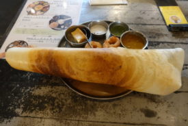 テーブルを覆う巨大ドーサ@南インド料理店 ボーディセナ