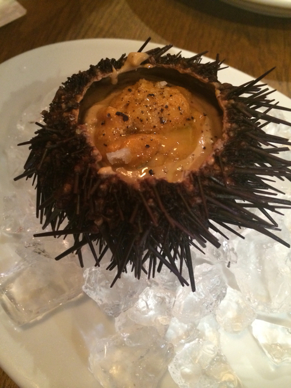 2014.09.21 夜 とにかくウニのプリンを絶対頼んでください!@エルプルポ スペイン料理 四ツ谷・市ヶ谷・飯田橋 5000円〜9999円 ★★★★☆ ランチに続いて神楽坂散歩。敢えて予約なしのアポなしスタイルでいきます。見つけたのは前々から気になっていたスペインバル。メニューは温かい&冷たいタパスとちょっとしたご飯ものという構成。店内はカウンターと2名掛けの小さいテーブルのみ。狭いけど、そこも含めておしゃれ感を醸し出しております。 飲み物はマオウ(スペインビール)を皮切りに白ワイン中心に注文させていただきました。 まず、声を大にして皆様に訴えたいのメニューは、・殻付きウニのプリン殻の中にウニと生クリームをたっぷり投入し、冷製スープのような仕上がり。黒胡椒のアクセントがとっても合います。とにかくうまい! そのほかのタパスもレベルが高い。・あさりのワイン蒸 ・チーズ各種(牛や羊や山羊。色々楽しめます。) ・とうもろこしのフリット ・イベリコ豚のタン焼サラダ(イベリコ豚のタンですよ!珍しい~) 〆はこいつ。・イカスミのメロッソメロッソとはリゾットの手前、おじやのような食べ物。たっぷりのイカスミとアクセントの生クリームで美味です。まるで夜空を見ているような美しさです。 ―エルプルポ03-3269-6088東京都新宿区神楽坂4-3 宮崎ビル 1Fhttps://tabelog.com/tokyo/A1309/A130905/13041708/