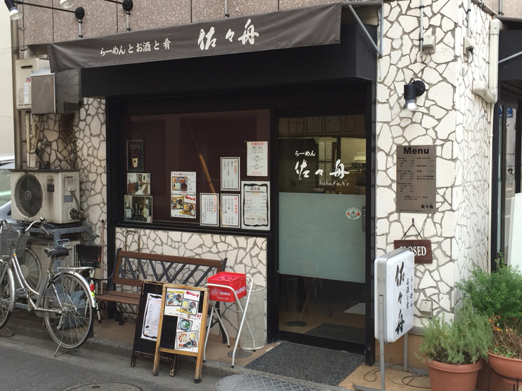 2015.01.24 昼 お酒とラーメンをちょっと一杯。そういうお店です。@らーめん 佐々舟 ラーメン・つけめん 東京・日本橋 〜999円 ★★☆☆☆ 昼過ぎまで寝てしまいランチタイムを逃す。時間は15時ちょうど。土日営業且つこの時間の営業店は限られます。 人形町の散歩がてら、達筆な字の看板を発見。らーめんお酒と肴『佐々舟』の文字。遠慮がちにドアを空けると快く受け入れてくださいました。どうやら15時閉店だったようで恐縮です。 「餃子焼売セット(700円)+ミニラーメン(100円)」 新メニューなる餃子、焼売のセット。プラス100円でミニラーメンがつけれるということで迷わず。焼売は時間がかかるようで、餃子とラーメンが先行して到着。 ラーメンは、典型的な醬油ラーメン。第一印象は、フードコートで食べるラーメン。特徴をあげるとしたら、背脂が浮いてる割にさっぱりしている点と、若干の生姜の風味を感じるところでしょうか。ミニラーメンにはチャーシューはつきません。一枚くれたら嬉しかったですが、何しろ100円ですからね。麺は縮れ麺でこちらも自家製なのだとか。 餃子は、野菜が多めで手作り感があります。玉ねぎのシャキシャキが心地いい。なんでも皮は自家製なのだとか。なんとなく家庭を思い出すお味。 最後にやってきたのが焼売。味付けは中華系の調味料だと思いますが、非常に甘い。辛しとの相性はよい。これが一番かも。 ご夫婦で営業されているようで愛想がよく常連さんに愛されているお店でしょうね。皆さん、昼から話に花を咲かせながら、お酒を愉しんでらっしゃいます。ドラマの『新参者』のロケ地の隣だったとかで、阿部寛さんとの記念撮影カットが飾られておりますが、この時の店主と奥様の表情が非常に印象的です。 ―らーめん 佐々舟03-3664-1117東京都中央区日本橋人形町2-22-6 佐々舟ビル 1Fhttps://tabelog.com/tokyo/A1302/A130204/13035293/