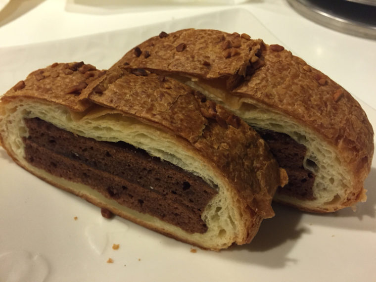 2015.01.28 夜 創業94年。双子のおじいちゃんが営む人形町のパン屋。@サンドウィッチパーラーまつむら パン・サンドイッチ・ハンバーガー 東京・日本橋 〜999円 ★★★☆☆ 今日の夜はおうち御飯でチキンのトマトソース煮。バケットとなんかと食べたいなぁと人形町のパン屋さんを捜索。 ありました。目立つ黄色い看板に、手造りのサンドウィッチ、焼きたてのパンの文字。焼きたてが到着するのは6時〜7時と9時〜11時の間。伺ったのは18時前後だから、焼きたてではないですね笑 素朴な建物から見える店内の様子は、下町を思わせるどこかほっこりした空間。なんと大正10年(1921年)の創業。かれこれ創業94年ということになります。 そして、同じお顔のおじいちゃんが二人!?双子のおじいちゃんが店頭にたっておりますが、御年は80を超えているそうです。揃ってお元気なんて何よりでございます。驚くのは、さらにこのおじいちゃん達。それぞれのお嫁さんまで一緒に働いてるとのこと。しかもお嫁さん達のほうが長い。この日は看板娘の和子さんが接客してくれます。 双子で営業してる創業94年のパン屋というだけで既に美味しいです。なんかご馳走様です。 イートインコーナーも併設しており、30席程度のキャパシティーがあり、売っているパンやトースト、調理パンはその場で作ってくれるそうです。 ・バケット(270円)…時間がたっても固すぎず、メインの食事を引き立ててくれます。 ・クロワッサンケーキ 1/8カット(200円)×2…クロワッサンの中にチョコレートのカステラ。 あまりパンに関して論ずる比較対称が自分の中にないので、本日は双子のおじいちゃんが経営というエピソードもおかずにして、チキンと頂こうと思います。 ―サンドウィッチパーラーまつむら03-3666-3424東京都中央区日本橋人形町1-14-4https://tabelog.com/tokyo/A1302/A130204/13008071/