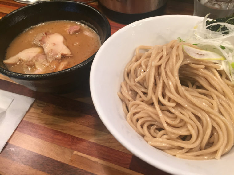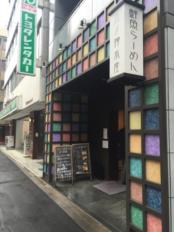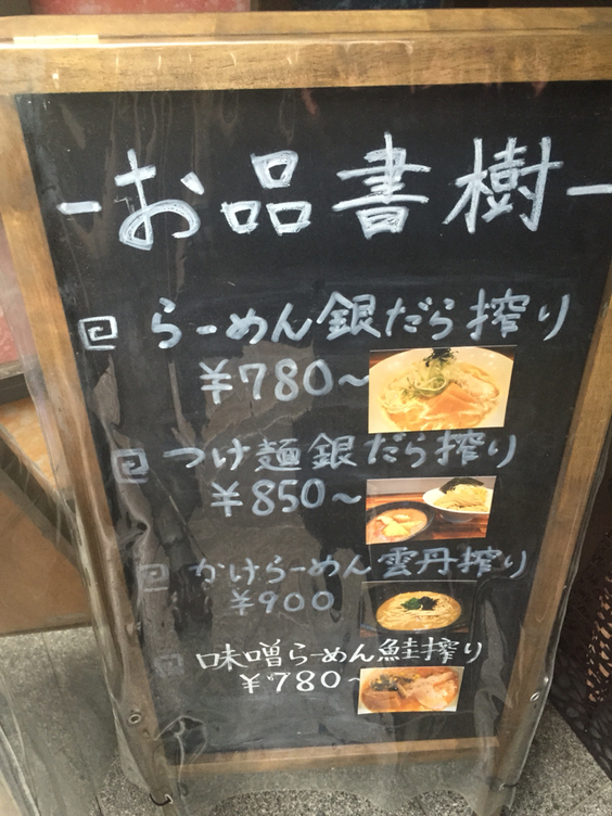 2015.02.18 夜 銀ダラは飲み物です!@五ノ神水産 ラーメン・つけめん 秋葉原・神田・水道橋 1000円〜2999円 ★★★☆☆ 魚を飲んでみませんか?インパクトのあるコピーに迎え入れられる。今脚光を浴びつつある鮮魚系ラーメン。そんなに耳馴染みがないワードですね。おいらの引き出しだと新宿の『麺屋海神』と青梅の『いつ樹』くらいしか想起できない。 調べてみると、こちら『いつ樹』の系列のようです。鯛を使った鮮魚ラーメンが看板の『いつ樹』。2号店の新宿『つけ麺 五ノ神製作所』、3号店の大久保『らーめん 五ノ神製作所』と展開しています。4店舗目となるのが、『五ノ神水産』。得意の鮮魚系で攻めてます。 メニューは、銀ダラ、雲丹、鮭の3種。鮮魚というか海鮮スープのようですね。わりと広めの店内は魚の匂いが充満してます。さすが海鮮押し。 「肉入りつけ麺銀ダラ搾り」 1050円飲み物というだけあって、まるで銀ダラを食べているかのようなスープ。銀ダラのアラだけでなく、中骨まで活用しているそうです。ただの表層的な味付けではない。粘度も高く、煮込んでしっかり旨味を抽出していることが伝わります。 つけ麺は毎日『いつ樹』から届くストレート麺。少し茶色がかった太めのモチモチ麺。麺のわずかな気泡にスープがしみわたる。量がすこぶる多いので小食の方は気を付けて、スープ割りは完全にアラの味。最後まで銀ダラにお付き合いいただきました。決してキワモノ狙いではなく、完成度の高いラーメンです。銀ダラは飲み物と認識しました! ―五ノ神水産03-6206-8814東京都千代田区神田多町2-9-6 田中ビル別館 1Fhttps://tabelog.com/tokyo/A1310/A131002/13163444/