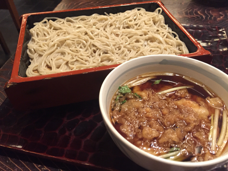 2015.02.25 夜 歴史の一端を味わえる快感。砂場直系の絶品蕎麦。@室町砂場 日本橋本店 そば 秋葉原・神田・水道橋 3000円〜4999円 ★★★★☆ 砂場。蕎麦、ひいては日本の食文化にとてつもなく大きな足跡を残す、蕎麦の歴史を語る上で切り離すことのできないワードです。 明治2年(1869年)の創業。蕎麦屋の系譜としても糀町七丁目砂場藤吉の江戸時代に創業。糀町七丁目砂場は南千住砂場に移転、こちらから独立したのが室町砂場で、これが明治2年の出来事。あの虎ノ門砂場はその3年後に創業ですから、どれだけ歴史的価値があるかは明らかです。 平成20年(2008年)に現在の建物となり老舗の蕎麦屋の屋号を守り続けております。まだ新しい建物にかかわらずただならぬ雰囲気。この直感的な印象は、おいらの脳内の先入観なのでしょうか?それとも、歴史が第六感的に訴えかけてくるのでしょうか。 小上がりの座敷席が3つ。6人ほど着席可能で宴会が繰り広げられる。奥には個室、二階にも大きな座敷がある模様。一階の席からは坪庭が覗ける。庭にこのスペースをさく余裕っぷり。王者の香り漂います。 室町砂場を語る上でもうひとつ重要なのが、天ざる・天もりの発祥のお店であるということ。前者は更科粉、後者は一番粉で打った蕎麦を提供してくれる。 まずはビールとつまみを注文。「ざる」にするか「もり」にするかは後々考えれば良い。 【おつまみ】・あさりの佃煮。山椒がほどよく振りかけられ、しっかり煮付けていて美味。酒にもよく合いゆっくり食べたい。しかし、閉店間際の駆け込みだったのが悔やまれる。 ・焼き鳥(タレ)こ、これは。蕎麦屋の焼き鳥のレベルを超えている。このレベルの焼き鳥を提供してくれる店など、数えるほどしかないと思う。しっかりした濃口のタレで隅々までタレが行き渡る。お肉自体も柔らかくてふわふわ。しっかり焼いたレバーも臭みなどとは無縁の仕上がり。極太のネギも野菜本来の甘みとタレが融合し、酒へと誘う。 【お蕎麦】天もり。通常のお蕎麦屋では、天ぷらと蕎麦が分かれてくるもの。発祥の地というこちらでは、江戸前のそばつゆにかき揚げが浮かびます。濃い口のつゆをかき揚げが吸い放題吸ってヒタヒタになっている。具である海老にも存在感があり不味いはずがない。 味の第一印象は、緑のたぬき。こういっている方が多いのも頷けますが、深みのレベルはインスタントの域とは違います。この印象はむしろたぬきが頑張って似せることができたと評価するべきでしょう。 蕎麦は一番粉らしい白っぽい色に細くてみずみずしい見た目。喉越しもよく、個人的にはかなり好みのお蕎麦です。 ―室町砂場 日本橋本店03-3241-4038東京都中央区日本橋室町4-1-13 砂場ビルhttps://tabelog.com/tokyo/A1310/A131002/13000316/