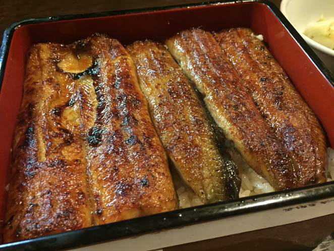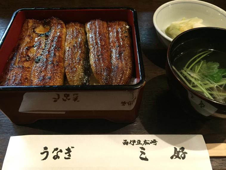 2015.03.09 夜 うなぎの国から人形町へ。@三好 鰻 東京・日本橋 3000円〜4999円 ★★★☆☆ うなぎの国、静岡県。年間消費量ナンバー1の静岡県から遠く人形町までやってきた鰻屋がございます。名前は『三好』。 本店は西伊豆。実はご兄弟で兄は西伊豆、弟は人形町でうなぎを焼いております。この弟さん、体躯のいい大将で30年以上日本料理の修業をしたとのこと。体つきと経験が期待度を高める。 店内は手前からカウンター、テーブル、板張りの座敷と自由度が高く、一人飯から接待まで対応可能。 本来なら日本酒とつまみを愉しんだ後に、うなぎにいくのがおいらの習わし。実は昨日痛風の発作が発症。つまみからスタートして白焼きで〆るような粋なまねはできません。本日は重をいただいて早々に退散いたします。 ・うな重(月)3650円鰻重は五段階。桜、花、月、雪、重ね。質ではなく量の問題。それでは、真ん中の月いってみますか!普通サイズは花らしいけど。 20分ほどで到着。鹿児島産の鰻は丁寧に蒸してくれたおかげでフワフワな食感を実現。いわゆる関東風ですね。70年きらさなかったという秘伝のタレが焼かれて香ばしさとして届く。釜戸で炊いたという自信のお米も濃厚なタレを受け止める懐の深さ。 注文があるとすれば肝吸いの出汁。これは少々物足りない。日本料理で鍛えたその腕を遺憾なく発揮してほしいものです。 次はお酒とおつまみをいただきます。 ―三好03-3664-3440東京都中央区日本橋人形町1-5-6 ナカハタビル 1Fhttps://tabelog.com/tokyo/A1302/A130204/13022072/
