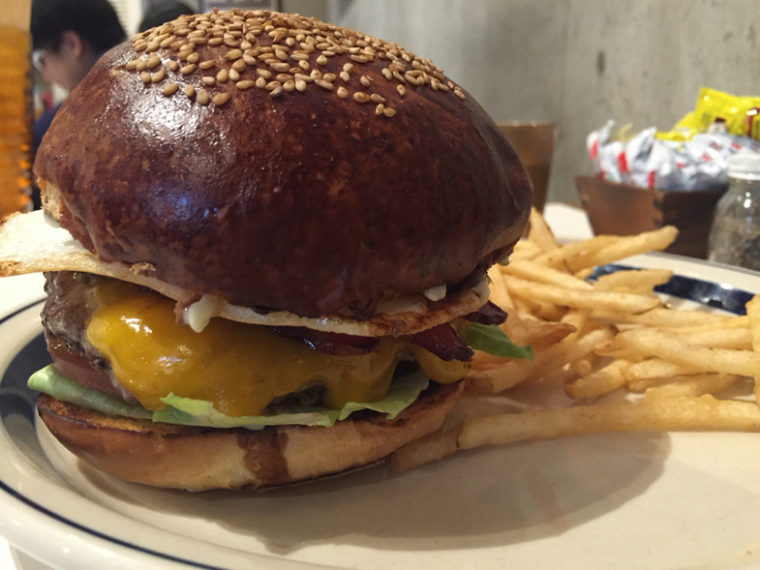 2015.03.15 昼 裏原宿らしいお洒落ハンバーガー!@ザ グレートバーガー パン・サンドイッチ・ハンバーガー 原宿・表参道・青山 1000円〜2999円 ★★★☆☆ 裏原宿。通称裏原。若者向けのショップやお洒落な美容室が居並ぶエリアですが、同様に可愛らしいカフェもたっくさんあります。多分の漏れず、こちら『ザ グレートバーガー』もその1つ。 調子にのって裏原の美容室なんかで髪の毛きってますので、混み具合は折り込み済み。オープンの11時半の10分前に到着。この時点で10人強が並ぶ。最高50人近いキャパなので問題ないですが、人気なんですね〜。外国人比率が高いのも原宿らしい。 注文が遅いときっと到着にも時間がかかるでしょう。即決のミトミえもんの異名をもつおいら。(初めて言ってけど。)メニューを秒速で確認します。 バーガーの種類が豊富なことはもちろん、サンドイッチやグリルまで取り揃えます。 ・ベーコンチーズバーガー(1350円)+フライドエッグ(100円)ハンバーガーのために開発したという天然酵母入りのパンを使用。黒っぽいバンズにセサミを散りばめる。粗挽きの赤身と脂が配合されたパテは牛脂の力でジューシーと脳が認識します。トマト、レタス、オニオン、レリッシュ(ピクルス)、マヨネーズ、マスタード。様々な味がふんわりしたバンズに挟まれて何層にも味を構成します。 黒っぽいバンズ、黄色の濃いチーズ、彩と食感を与えるレタスとトマト。そして、肉汁マックスのパテ。という感じですね。正直平均点というところでしょうか。行列の期待度がハードルを上げてしまったのかもしれません。 フレンチフライは皮付きと細切りで選べます。でもマクドナルド育ちのおいら、ポテトは細切りと脳に刷り込まれております。マクドナルドといえば、トイレの絵!挑戦的な風刺画がなんともいえずオシャレ。内容はお店で是非見てみて!ポテトはシンプルな上げで少し甘みを感じるくらい。マスタードとは相性いいですね〜。 オールドカントリー調のお洒落な内装でショップも併設。裏原のお洒落な住人になったかのようです。気分のいいまま退散します。 ―ザ グレートバーガー03-3406-1215東京都渋谷区神宮前6-12-5 1Fhttps://tabelog.com/tokyo/A1306/A130601/13042654/