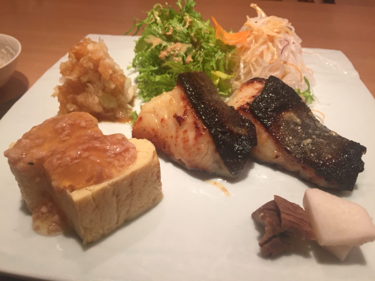 2015.03.16 昼 優雅な西麻布ランチ。上品に仕上がる銀ダラの西京焼き!@霞庭 まつばら 日本料理 六本木・麻布・広尾 1000円〜2999円 ★★★☆☆ 霞町。西麻布の旧名であるが、この地にオープンしたのが2010年。ご主人の松原博秋氏は、銀座『未能一』・金沢『金城樓』をはじめとして数々の名店で修行し料理長を歴任。満を持してというタイミングですね。 霞町の庭で優雅な和食のランチをいただけます。モダンな建築であるビルの3階。同じビルにはイタリアン『オステリアティ』、鮨『いしい』など期待感のある若い店らと同居します。 エレベーターが開くと白い大きな暖簾。柄などはないが、麻っぽい生地が和のぬくもりを感じさせてくれます。まだヒノキの香りがしそうな戸を開けて店内へ。 調理場の人数が多く、5人が休みなく動く。13時過ぎの来店だったので、すでに夜の仕込みがはじまっているのだろう。揚げ、焼き、刺身に3人の職人が配置されてるが、魚をさばくのがその人松原氏である。柔和な笑顔で迎え入れてくれ、敷居を下げてくれます。 メニュは和牛を中心とした肉料理と魚に分かれる。その他、おまかせの膳などがあり、1800円~7500円のレンジ。決して安くはないですが、夜の単価を考えれば比較的リーズナブルと呼べるでしょう。 ・銀ダラの西京焼き(1800円)正方形の白い陶器に西京焼きの切り身。その他餡かけの玉子焼き、サラダ、漬物、おろしを一枚皿にプロット。日本料理は盛り付けも料理の1つ。大変美しゅうございます。 柔らか~い銀ダラは味噌だけではない素材の甘さを身の奥まで感じられ、焦げがなんとも食欲をそそります。ご飯が進みます。そうそう、ご飯もお米が立っていてとても美味なんです。宮城産だそうです。ササニシキやひとめぼれあたりなのかな? 赤出汁と煮物(芋、玉ねぎ、いんげん)も丁寧に作られていて、安心感のあるお店。最後の白コーヒーのアイスなぞ初見のものでしたわ。 超高級店をランチで安く食べ尽くすシリーズ ~六本木篇~ ―霞庭 まつばら03-5772-5717東京都港区西麻布1-7-2 アデッソ西麻布 3Fhttps://tabelog.com/tokyo/A1307/A130701/13118905/