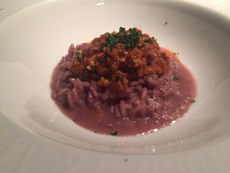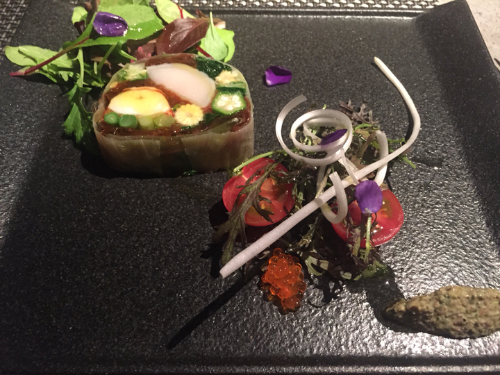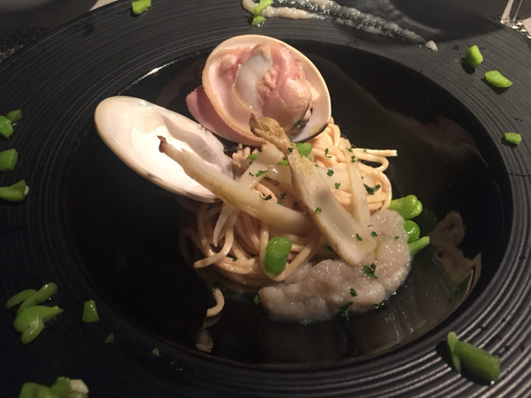 2015.04.26 夜 大人のオステリア。ブッビーノの由来は豚の鳴き声!@オステリア ブッビーノ イタリアン・ピザ 東京・日本橋 5000円〜9999円 『オステリア ブッビーノ』オステリア(osteria)は日本語では居酒屋と訳されるが、ブッビーノにあたる言葉はイタリアにはない。 これは造語。豚の鳴き声のブビーッ!!とワインを意味するvino(ビーノ)の造語。ヨーロッパでは幸せの象徴と呼ばれる豚はこの店のシンボル。同じく人形町にある姉妹店の『イルバンボリーノ』も同じく子豚ちゃんがいっぱいいます。 コースは3種。おまかせのAはメインが肉のみ、Bは肉と魚。そして、食材のグレードがあがるシェフのおまかせコース。今宵は昼の天ぷらがお腹に残ってるので、軽めのAを選択。 【シェフおまかせコースA】・スープ仔牛のブロードをベースにした新玉ねぎのスープ。余分な味付けをせず、玉ねぎの甘さを引き出す。ほのかに香るローズマリーがいいですね。メレンゲはちょっとした食感の見た目の美しさを作り出す。 ・前菜オマール海老とホタテのテリーヌ。野菜や魚介で作ったテリーヌは緑、赤、黄、紫と美しい。内訳は、キャベツに巻かれる形で、オクラ、海藻、ふき、ほうれん草、ベビーコーンなど。見た目の美しさと連動してさっぱりさも併せ持つ。 ラビコットソースのピクルスやワインビネガーが緑黄色野菜に絡む。タプナードソースやフレンチキャビアなど気の利いた副次的な要素も丁寧な作り。 ・手打ちパスタ大きな蛤に山菜の山独活を練り込んだパスタ。具材には山独活と空豆。さらに山独活のソースまで。山独活の渋みが表面から内側まで全体の表情を作り、空豆の甘さが味を整える。全体に魚の出汁であるフュメとはまぐりエキスが行き渡り深みを担当。 ・リゾット牛挽肉のラグーソースでミートソースを形成。赤ワインとパルミジャーノチーズが吸い込んだお米との相性が抜群。パルミジャーノが作るコク、スパイスの辛み、肉の旨味など様々な味が1つになる。 ・メイン通常は肉料理のところを魚に変更。(+300円)こういう我がままに即座に対応いただける懐の深さはありがたい。魚は大分豊後水道のイサキ。焦げ目のついた皮、甘みすら感じる白身。甲殻類で作ったスープによく合う。築地で仕入れたという北海道のホタテも身がしっかりで美味。副菜には、種子島のにがだけ(筍)、ウリ、スナップえんどう、そしてレンコンがスープの中に隠れる。シェフの地元は種子島だそうで、魚介や野菜が届くそうです。 ・デザートチョコレートケーキとラズベリーのジェラート甘味は割愛するが、見た目は美しい。女性は喜ぶでしょうね。 イルバンボリーノの明るい雰囲気とは違い大人なオステリア。子豚ちゃんの伝説でも語りながら女性を口説いてみてはいかが? ―オステリア ブッビーノ050-5591-0820東京都中央区日本橋人形町1-10-3 スクエアードコード日本橋人形町 1Fhttps://tabelog.com/tokyo/A1302/A130204/13161790/