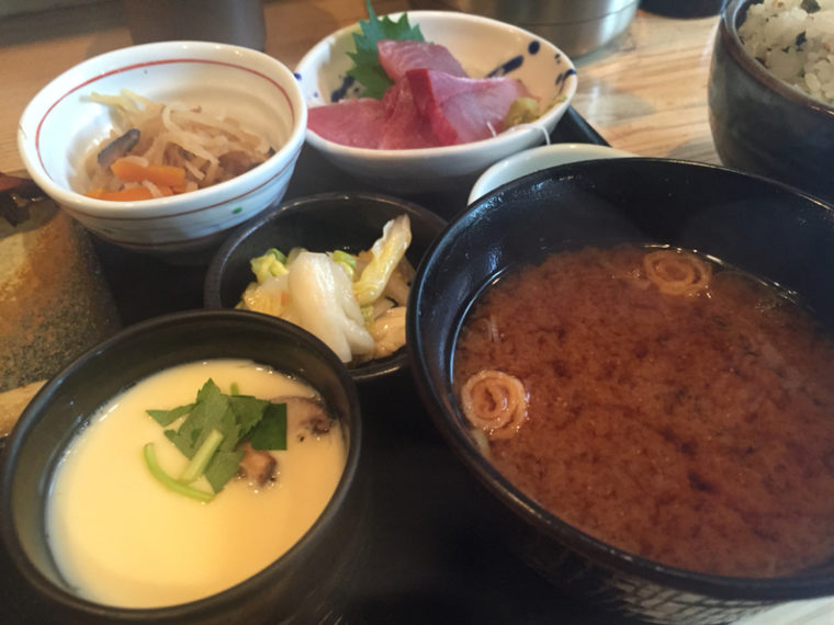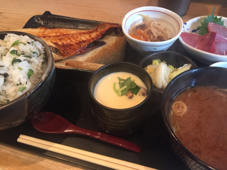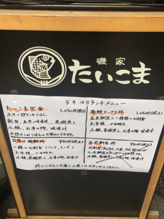 2015.05.12 昼 品目の多いランチって嬉しいものです。@磯家 たいこま 居酒屋・定食 六本木・麻布・広尾 1000円〜2999円 ★★★☆☆ 飲食店とは縁のなさそうなオフィスビル。二階に向かう階段を上がるとすぐにご飯屋さんだと気付く。 行列なのである。わざと時間をずらして13時15分の到着。この時間で待ちがでるほど。後述するが、売りの1つである炊き込みご飯が売り切れ。何かをとると何かを失う。悩ましいものです。 メニューは、たいこま定食、日替わり海鮮丼、海鮮ミックス丼、五色納豆丼の4種。3種は海鮮丼だが、店名が冠につくメニューを頼むのがおいらのルール。 ・たいこま定食(1050円)焼魚、刺身、茶碗蒸し、小鉢、漬物、味噌汁、炊き込みご飯と旅館ばりのラインナップ。小皿が並ぶ食事は贅沢ですよね。 焼魚は赤魚の味噌焼き。毎日河岸で強いれるという新鮮な素材に味噌の甘さをまとわせる。脂がのった白身魚は合格点。 小鉢には、切り干し大根。漬物は白菜。刺身は好みの問題か期待のわりにという印象。普通に美味しいですけどね。茶碗蒸しは店の良し悪しを示すバロメーターですが、悪くない。つまり、出汁がしっかりしているということですね。 炊き込みご飯は売切れでしたが、胡麻やワカメをあしらったご飯にはこだわりも感じます。 最後に。清潔感のある木質の店内。外観の印象とは異なりモダンな雰囲気。対面のカウンターに焼酎がびっしり。銘柄の選択にもセンスがあり、夜は表情を変えそうだ。 ―磯家 たいこま050-5868-5657東京都港区虎ノ門5-2-7 土井ビル2Fhttps://tabelog.com/tokyo/A1307/A130704/13133968/