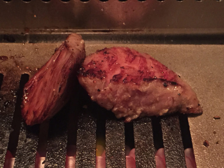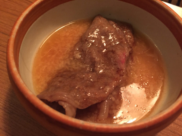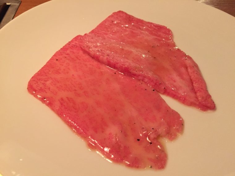 2015.10.18 夜 豪快な矢澤焼きを見よ!希少部位も勢ぞろい。@焼肉 矢澤 東京 焼肉・肉料理 東京・日本橋 10000円〜29999円 ★★★☆☆ もう一大ブランドですね。ヤザワミート。あらゆる肉を制覇する勢いで拡大していきます。ハンバーグの「ミート矢澤」、ホルモンの「稲田」、ハンバーガーの「ブラッカウズ」、しゃぶしゃぶの「今福」といった感じ。 肉の王道の焼肉を提供するのが、本日の目的地『矢澤』である。オープンなのはカウンターキッチンだけでなく店員さんの接客もオープンで心地がいい。どうやら奥に個室もあるようだ。 まずは前菜代わりに「正真正銘のユッケ」。あれ?これはジャンボの白金店と同じではないですか!そうなんです、白金店はジャンボの暖簾分けでヤザワ系列の経営なんです。相変わらず卵が秀逸で濃厚な肉に負けない。その絡み方にほっぺが落ちます。 続いて「エッグスラット風ポテトサラダ」。エッグベネディクトに続くお洒落料理のエッグスラット。ジャガイモのピュレと卵を入れて湯煎した卵料理のことだが、矢澤的にはマッシュポテトと温泉卵にトマトの酸味を加えることでラザニアのように仕上げます。ひき肉の存在感にらしさを感じます。 ここから先はおまかせ(8000円)でみつくろっていただきました。 まずは、弾力が豊かな「上タン」を塩ポン酢タレでいただく。 続く「カイノミ」の脂がすごい!周りに焼き目をつけることで脂を閉じ込めます。口の中で開放された脂身はやわらかい。 厚さゆえに柔らかさが際立つ「サーロイン」が続きます。ただ、この辺は多少肉感が強く重さも伴う。 「サーロインの矢澤焼き」もジャンボの野原焼きを思い出させます。 ジャンボは卵黄だけだったのに対して、さらに出汁ととろろが追加される点がオリジナリティー。大きな面積をほこる薄切りのサーロインが鉄板におかれると、煙がいっきに宙に立ち上がる。少し燻製っぽい味はこれが理由なのかもしれない。 肉のフィナーレは希少部位。鉄板の上で火を噴く「トモサンカク」。良質な脂の塊なのでしょう。口の中でとろけてなくなります。これが本日の優勝です 。赤身でしっかりした味の「しんしん」も良いがトモサンカクは旨かった。 〆は「冷舌々麺」。文字通りタンを使った坦々麺のこと。胡麻がしっかり効いた甘めな味付けが強く、タンを存在感が薄い。むしろフライドオニオンなんかのアクセントが一番わかりやすい。 やや肉感が強く胃には少しだけきつい面もあったが、全体的にクオリティが高い。 ―焼肉 矢澤 東京03-3242-2914東京都中央区八重洲1-5-10 トーイン八重洲ビル 1Fhttps://tabelog.com/tokyo/A1302/A130202/13168322/