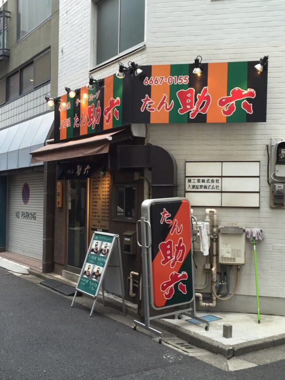 2016.03.12 昼 オフィス街に彩を加える助六。厚みある牛タン定食はおススメです!@たん 助六 焼肉・肉料理 東京・日本橋 〜999円 ★★★☆☆ 土日のオフィス街って寂しいですよね。ビジネスという機能的な側面が余計に強調されて街として無機質に感じてしまいます。東京証券取引所のある日本のビジネスの中心地の兜町もその例外ではない。こんにちは、寂しがりやのミトミえもんです。 さて、土曜日の兜町。この無機質な町並みにあって一際目立つのが『たん助六』だ。歌舞伎で使われる緑、橙、黒の定式幕が街に彩りを加えているようです。 一番オーソドックスなメニューである「牛たん定食」(980円)をいただきます。 とろろ付きのメニューもあるのだが、どうしてもご飯食べすぎちゃうんですよね。ダイエット意識が強まってるんです。健康診断ボロボロでしたから。 タンは厚みもあり、弾力も比例する。口の中に入れた瞬間はあっさりめな印象があるが、肉の旨味がじわじわにじみ出てくるので下手な味付けは必要ない。それでも足りない方には胡椒や一味でアクセントをつけてもいいかもしれない。小さい頃よく噛んで食べなさいとよく言われましたが、味を楽しむ意味でも合理的な手段だったんですね。 そして、タンを食べるときに重要なのは麦飯。牛タンが食べれられたタイミングは戦後。食糧難から安価な麦飯が一般化したという説が濃厚だそうだが、一概にそうは言えないと思う。であれば、他の食材でも麦飯が生き残っていても不思議ではない。やはり相性がいいと感じます。 そうそう、卓上の青唐辛子の味噌漬けも見逃せない。 味噌の濃厚さと青唐辛子の辛味がめちゃくちゃ美味しいんです。しかもご飯との相性が抜群で結局ご飯はおかわりしてしまいました。反省。 — たん 助六03-6667-0155東京都中央区兜町16-6 1Fhttps://tabelog.com/tokyo/A1302/A130203/13157870/