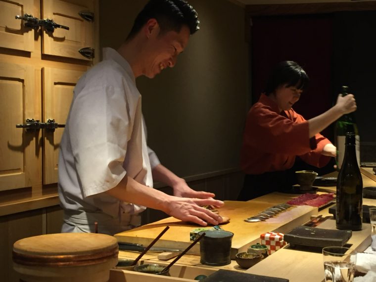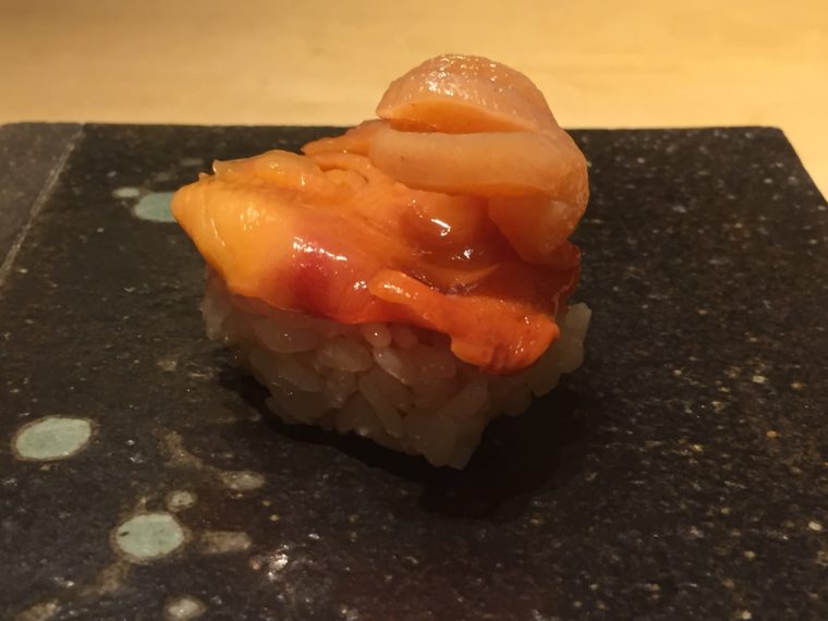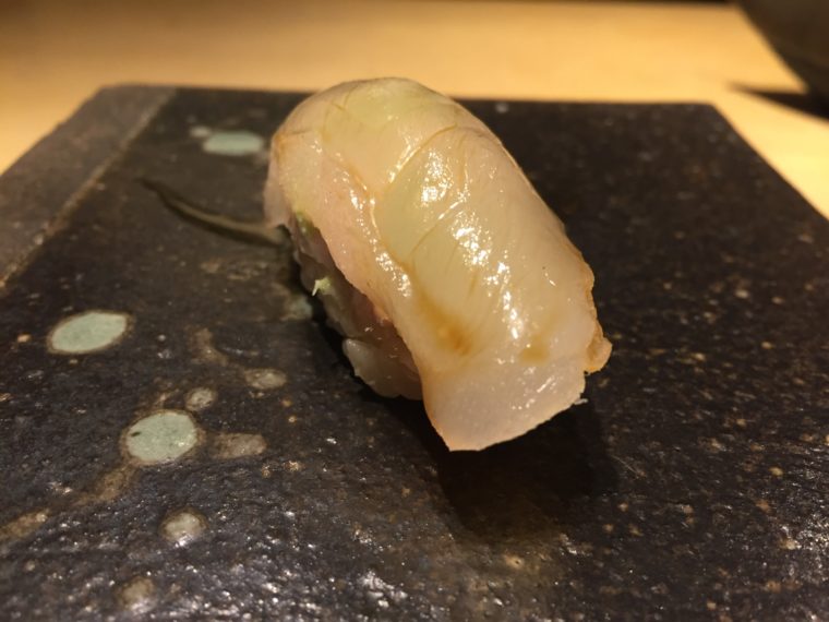 2016.03.25 夜 「美しく鮨を握る男」@くろ﨑 寿司 渋谷・恵比寿・代官山 10000円〜29999円 ★★★★☆ 美味しい店は美味しい店を知る。これはグルメの必定です。『くろ崎』の大将に出会ったのは、一年以上前のこと。乃木坂の名店「やきとり心香」のカウンターで大将にご紹介いただいたのがきっかけだ。 当時はまだ店は開業前。黒崎氏の第一印象は所作からくる品の良さ。普通のお客様でないことは明らかだ。下北沢での修行のこと、青山にすし屋を出店予定とのことなどなど盛り上がったのを記憶してます。来訪を誓った固い握手を野放しにした薄情なミトミえもんをお許しください。 一年ぶりの再会を少々緊張した心持ちで戸を開ける。笑顔で迎えてくれる表情は握手を交わしたときと変わらない。そして、カウンターの先においても感じる品の良さもあのときと同じ印象だ。 ネタを包丁を入れる姿、握りの所作が本当に美しい。30代半ばという年齢で何故この所作にたどり着いたのか不思議でなりません。料理は人柄も表すもの。つまみも握りも非常に上品な仕上がりです。すでに平均点はかなり高いが、さらに若さという「伸びしろ」を想像すると恐ろしい。これからの「可能性」にも大いに期待したい。 やはり、美味しい店は美味しい店を知る。心香の村川さんにも大いに感謝したい。黒崎さん、最高の夜をありがとうございました。 「白魚の桜蒸し」 「メジマグロ」鹿児島産。上に腹、下に背。炙り具合が絶妙 「ホタルイカ」富山、ワタが美味。定置網でとったものをすぐ蒸すそう。 「帆立と蟹の真薯」つなぎを使用しない。 「蛸」佐島産 「鮑」青森産。肝にはご飯を。 「かわはぎ」握り。肝は間に。 「太刀魚」 「小肌」握り 「稚鮎」琵琶湖。裏ごしたものをつまみに。 「鮪」宮城産。酸味が強い。 「中トロ」 「のどぐろのとろろ蒸し」 「トリガイ」 「スミイカの昆布締め」鹿児島県出水市産 「紫雲丹」 「車海老」 「鯵」天草産 「金目鯛」 「穴子」甘め 「車海老の頭」 「干瓢」佐賀産の海苔 「玉子」 「赤貝」愛媛県今治産 — くろ﨑03-6427-7189東京都渋谷区渋谷1-5-9https://tabelog.com/tokyo/A1303/A130301/13178821/