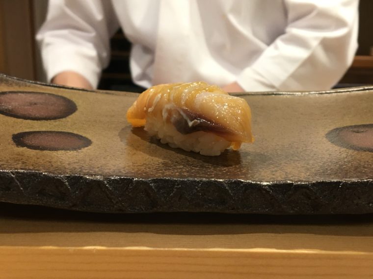 2016.09.01 夜 2回目の天本へ!@天本 寿司 六本木・麻布・広尾 10000円〜29999円 ★★★★★ 2回目の『天本』。総勢30を超えるつまみと握り。 全部書いたら腱鞘炎になるので、正通くんの料理の画力に頼ります。笑 お気に入りをいくつかご紹介。蟹身がリッチな「毛蟹の飯蒸し」と「このこ」。「このこ」をかけてもいいと連呼する正通くんの言葉に反応する自分を反省。日本酒との相性が抜群ですね! 篠島産の「平貝」。縦にカットするとこれだけの厚みをとれるのだとか! まるで鰤のような三陸産の「ひらまさ」! 脂が透き通るような「赤ムツ」の炭火焼。外は炭で強めに焼き、中はレアに仕上がる! 海味ゆずりの松前漬けは今度こそ「鰆」! 前回感動した「鯨」も違う部位のものをゲット! 鮑の鮑による鮑のための「鮑」の酒蒸し!鮑の蒸し汁で風味づけ! 今日も楽しい夜をありがとうございます。ちなみに後日知ったのですが、若き大将の正通くん、誕生日だった模様。言ってよ〜、お祝いしたのに! その他、ご紹介。 「もずく」長崎産。 「あさり」天草産。身は肥えてないが出汁が抜群。日本酒のみで味付け。 「鰯」三河産。梅干1つで味付け。 「煮蛸」佐島産。30分だけ塩茹で。 「ぼたん海老」北海道積丹半島。甘味が強くねっとりしてる。 「白川のスープ」炙った皮とともに。これ一生飲みたい!笑 「雲丹とイクラの丼」酢飯の塩分と雲丹の甘味が相性よし。野月半島 「干し数の子」西京漬け。 「新イカ」兵庫。 「白川」12日熟成。 「いさき」天然の昆布締め状態。4日間寝かせて塩をかけただけ。 「しんこ」船橋。一枚使い。 「鯵」神戸産。 「マグロ」 「中トロ」 「秋刀魚」レア感、わた付き。 「金目鯛漬け」須崎。骨付きで4日間。とろとろです。皮をひいてるだけ。 「鰹漬け」大船渡産。 「馬糞雲丹」青森産。 「車海老」豊後水道。 「〆鯖」対馬産。 「穴子」 「赤出汁」 「玉子」 — 1回目の訪問「いま最も注目を集める男「天本正通」の握る鮨@東麻布天本」https://blog.33inc.jp/2016/08/08/28382/ 東麻布 天本東京都港区東麻布1-7-9 ザ・ソノビル 102https://tabelog.com/tokyo/A1314/A131401/13196420/