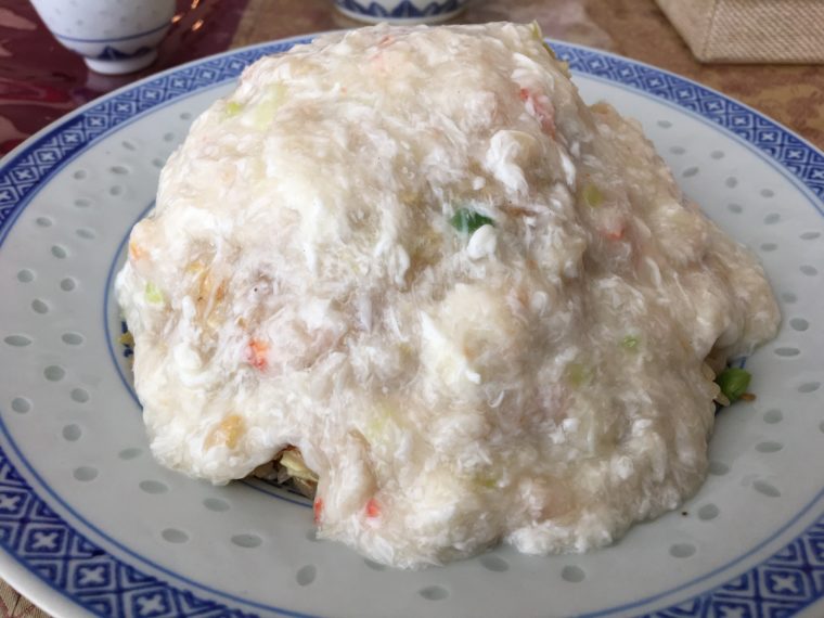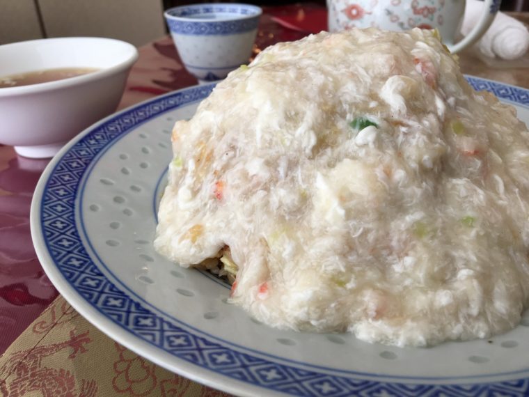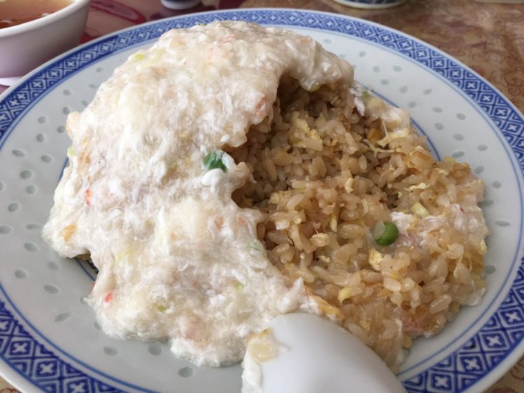 名物は「揚州炒飯(カニあんかけ炒飯)」だ。まるでパウダースノーのように美しい白いあんかけが炒飯を包み込む。レミオロメンの歌声が聞こえてきそうです。