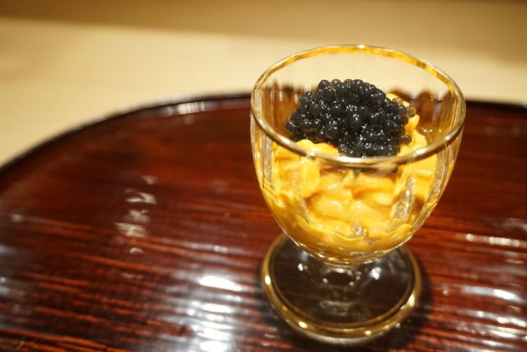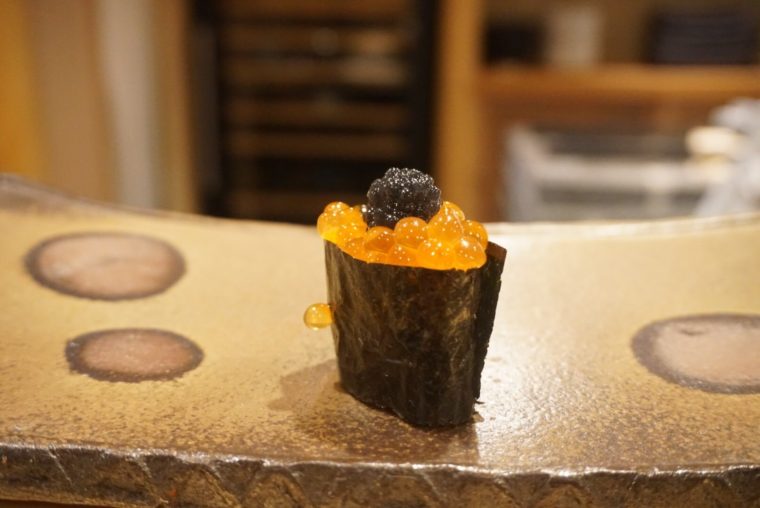 2016.10.13 夜 番外編① 黒イクラ会第二弾!天本くんと夜な夜な怪しい実験を。@天本 寿司 黒いイクラ会第二弾!前日の黒いイクラ会は素人が下品に食材を使うという暴挙を反省して、今回は料理人を巻き込むことに成功。といっても、営業終わりの夜中に無理やり乗り込んだだけだが。協力者は天本正通くん。飛ぶ鳥落とす勢いの『天本』の大将だ。 白トリュフのような芳醇な香りはいったい何に合うのでしょうか? まずは鉄板。雲丹とキャビアを。これは絶品。赤雲丹と比べてすっきりした味わいのバフンのほうがばっちり合う。以前スーパーで買ったミョウバンたっぷりのしょっぱいキャビアでは味が消えたが、さすが天本くんの手にかかれば絶品に仕上がる。 もう一つ大成功をおさめたのは鮑だ。鮑に塩気だけでなく旨味を提供。雲丹と鮑のは、足し算ではなく掛け算になるような印象だ。 単純な軍艦などは香りのいいキャビアだけ。海苔の風味もいいが結局足し算といった印象。これだけでもめちゃくちゃ美味いんだけどね。笑 成功があれば失敗もある。一番ダメだったのは魚卵と魚卵の掛け合わせ、「いくら」だ。イクラがほどけた際の汁気にキャビアが飲み込まれて味が消滅してしまった。 ホタテには合うと認識していたが、ねっとりした食感とは相性が弱いように感じる。白えびなどはその最たるもの。 結局、雲丹と鮑でいろいろ遊ぶ。深夜でネタ切れだったが、おそらく脂の強いマグロなども相性が良さそうだ。深夜の天本での変態な実験はこれからも続いていく。