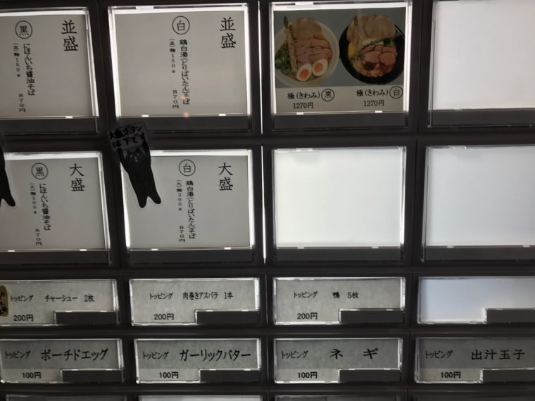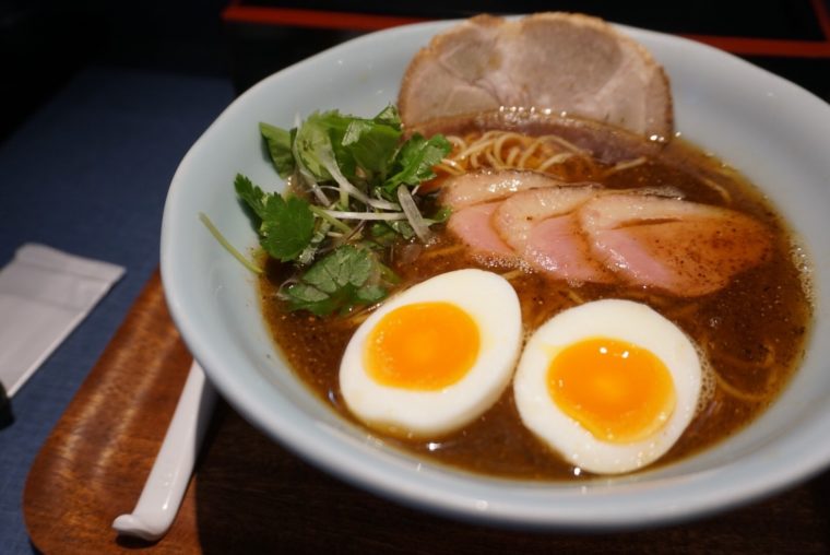 2016.10.27 昼 白か黒か!?このラーメンに白黒つけるのは難しい、、、@潮 ラーメン・つけめん 秋葉原・神田・水道橋 〜999円 ★★★★☆ 白か黒か!?このラーメンに白黒つけるのは難しい、、、 何事も白黒つけるのは難しいです。特に日本人にはハードルの高い課題ですね。だが、今回ばかりは白黒つけなくてはならないそうです。ただしこれはラーメンの話。黒は醤油、白は鶏白湯のこと。『潮』のメニューは白か黒かを選びます。こちらは非常に悩ましい選択だ。 悩んで末、「黒」を選択。にほんいち醤油そばという言葉に惹かれての結論。どうやら日本で一番という意味ではなく、にほんいち醤油というブランド醤油なのだそうだ。ちょっと複雑、、、笑 かえしに使われるにほんいち醤油を4種類をブレンドし独自に火入れした自信の醤油のようだ。 まずはスープを一口。なるほど力強い醤油の味だ。この醤油に対抗するためか、干物は7種類、量も2倍と贅沢に使用しているそう。さすが2倍も使用したというだけあって魚介出汁の存在感は強い。ふられた魚粉がさらに明確な印象を与えます。力強い出汁と醤油が握手した結果、雑味のない上品なスープが完成している。 これとバランスをとるためか香菜や玉ねぎを入れているところもポイントだ。そのほかの具材の充実度もすごい。鴨チャーシュー3枚に豚バラのチャーシュー。出汁玉子もまるごと1つ入っている。豊富さもそうだが、何より味のクオリティーも高い。特に鴨は臭みなどと無縁な旨味の塊です。 これは「黒」が白星か!?うーん、なんのこっちゃかわかりませんね。ぜひ「白」も食べにきたいと思います。白黒つけるのはそれからだ! — 麺巧 潮03-6206-9322東京都千代田区神田淡路町2-4-4 アール神田淡路町 B1Fhttps://tabelog.com/tokyo/A1310/A131002/13147387/