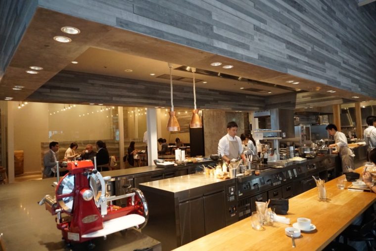 待ち時間に店内を眺める。色とりどりの野菜が並び高い天井が光を取り入れる。オーガニックな雰囲気を感じさせます。大きなオープンキッチンからも食にたいする誠実さを感じますね。