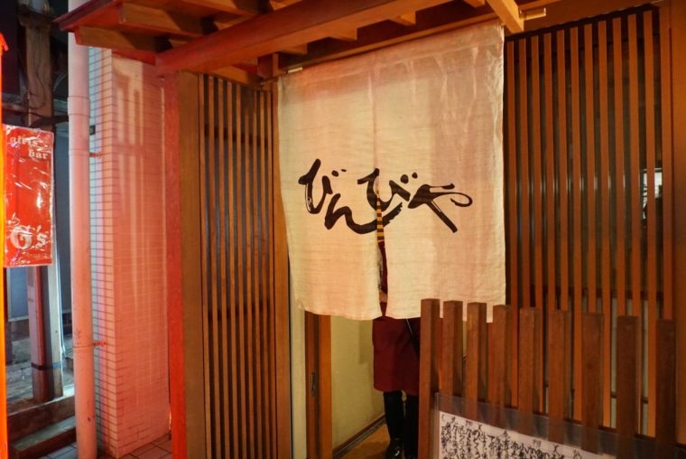 「オススメは刺身です。」刺身をリコメンドするのは素材への自信、つまり魚の鮮度と目利きへの自信がうかがえますね。それは店の名前にもあらわれている。刺身をすすめてくれた北新地にある店の名前は『びんびや』なのだ。