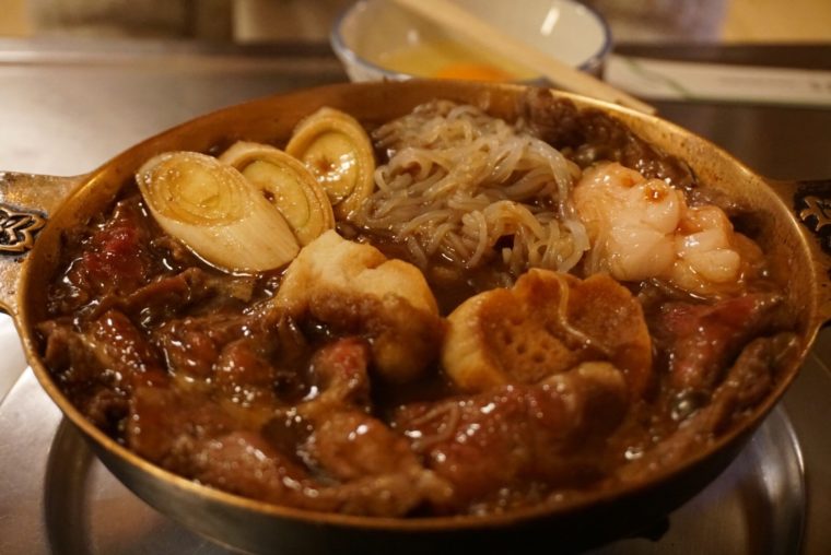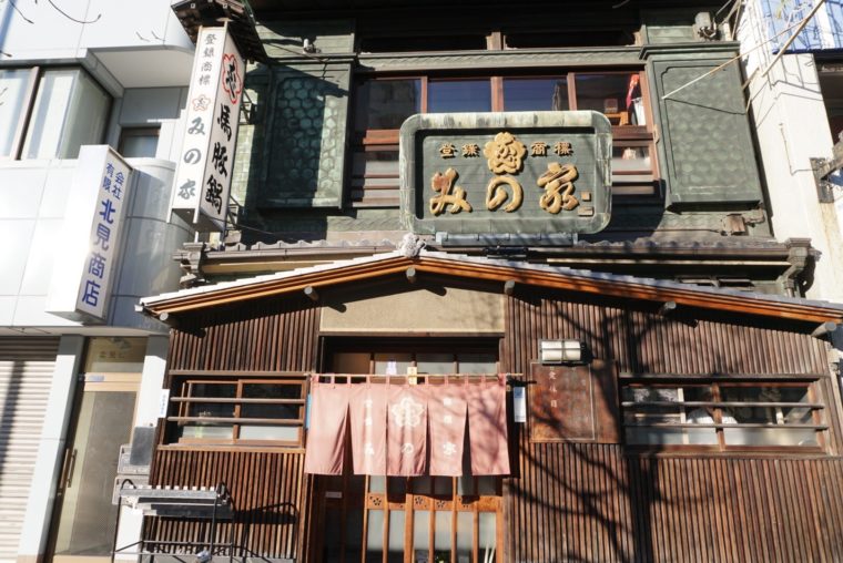 2016.12.25 昼 江戸の文化を守り続ける老舗の桜鍋@桜なべ みの家 本店 焼肉・肉料理 両国・錦糸町・小岩 1000円〜2999円 ★★★★☆ 下足番という仕事をご存知ですか?料亭や旅館で履物を出し入れする仕事で、客にとっては最初と最後に会話をする相手である。優秀な下足番は靴の様子で客の体調の悪さまで見抜いたなんて話も聞いたことがあります。ただ世の中は効率化の嵐。もう下足番の方を見かけることも少ない。 久々に下足番の方にお会いできたのが『桜なべ みの家 本店』。創業も明治30年(1897年)という老舗で名物の桜鍋だけでなく江戸の文化まで継承しているようだ。森下の駅近くの風情を感じる木造建築。靴を預けた後は籐敷きの座敷と特大の熊手が迎えてくれます。 言わずもがなですが、桜鍋とは馬肉の鍋のこと。2~3週間も熟成させたという馬肉はロースもヒレも柔らかい食感に馬肉らしい味わいを楽しませます。筋を感じないところからは丁寧な処理を連想させますね。 馬肉はもちろんだが、注目してほしいのは鍋に一緒に提供される味噌の存在。八丁味噌の独特の渋みとコクが出汁と一体となり、馬肉の相棒として最高の調味料となります。この割り下の旨さは麩を食べれば一目瞭然です。 肉は溶き卵とともにいただきますが、この溶き卵の役割はこれだけではない。残った卵は鍋に逆輸入。半熟に固まったら再びとりだしてご飯の上に豪快にかけましょう。 味噌を混ぜたコクのある割り下と馬肉自身の旨味を凝縮した卵ですよ。これがご飯に合わないはずがない! 帰りはもちろん下足番の方の笑顔に見送られて。僕の体調はどうでしたか?笑 — 桜なべ みの家 本店03-3631-8298東京都江東区森下2-19-9https://tabelog.com/tokyo/A1312/A131201/13002984/