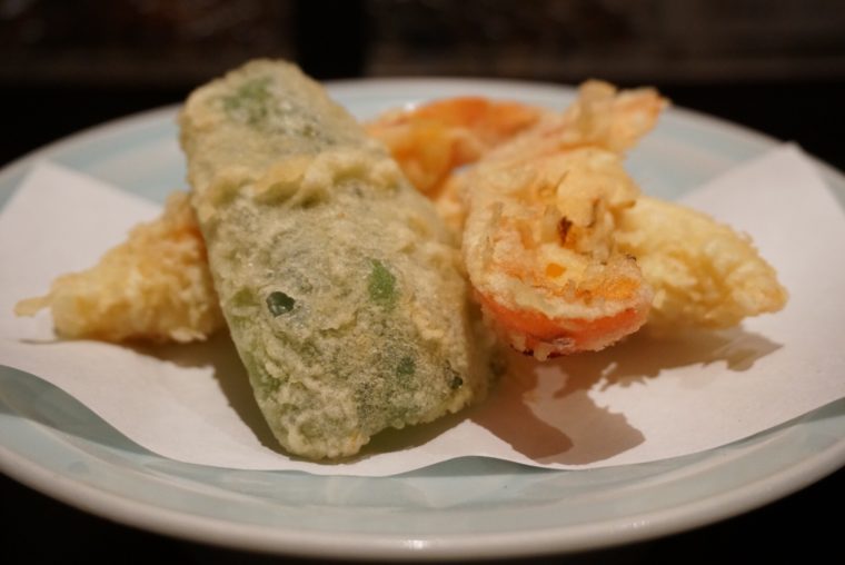 ミトミえもんには特上過ぎましたかね。すごい量の天ぷらが提供されます。国産の活け〆の車海老の頭から始まり、車海老、牛蒡、蓮根、椎茸、ピーマン、ヤングコーン、茄子などなど三皿にも及ぶ天ぷら祭りです。