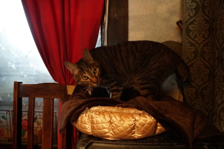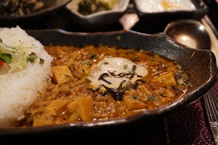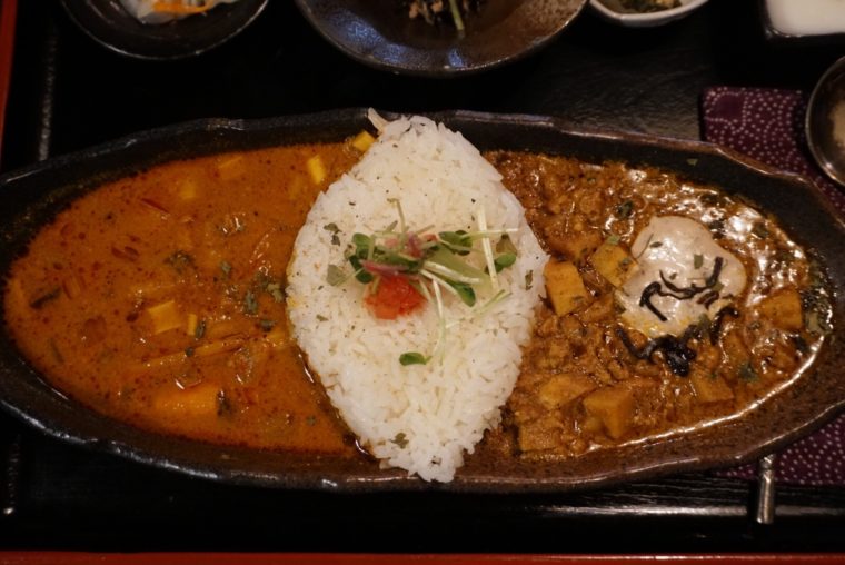2017.03.26 昼 絶品カレーの旧ヤム邸でアイドルに出会った。@旧ヤム邸 空堀店 カレー 大阪市 1000円〜2999円 ★★★★☆ おっ邪魔しまーす!ヤムさんのお家にやってきました。でも、ここはヤムさんの家ではなく、カレー屋さんの『旧ヤム邸』です。大阪の谷町六丁目の空堀商店街にあるレトロな日本家屋にあるカレー屋だ。 つーか、ヤムさんっていったいどなたなんでしょ?ヤム・ナマステオさんって名前の全力のインドネーム。ナマステって入ってますからね。ナマステオだなんて、親の顔が見てみたいです。この方、大阪でスパイスを流行らせるために奔走した人なんだそうです。今日の大阪スパイスカレーが進化したのは、きっとこの人の功績もあるのでしょう。彼に敬意を表してというのが由来らしい。 メニューは4種の中から2つ選ぶ仕組み。米を真ん中に左右にカレーが配置されるあいがけのカレー。2つのカレーを分断する米もジャスミンライスと玄米から選ぶことができます。 ミトミえもんの選択は、この2つ。 「麻辣系マグロチリカリー」 「たけのこ入りスパイシーポークキーマに桜クリーム塩昆布添え」 完全に中国と日本のカレーを想起させます。ヤムさんのインドの志はどこに行ってしまったのでしょう?でもね、ヤムさん安心してください。あなたが広めたスパイスはしっかり効いております。小麦粉などは使っていないようで、シンプルにスパイスの味を感じることができます。アーユルヴェーダじゃないけど、健康的であることは直感的に伝わります。。 ただでさえ独自性の強いカレーが多い大阪。日本食材をうまく織り交ぜるという手法もまた独創性。とはいえ、ちゃんと理にかなってるんですよね。マグロは繊維の中に辛みがしっかり浸透するし、筍は食感をうみ、桜クリームなどは辛さの緩衝材として機能する。唯一無二の魅力がここにもあります。 魅力といえば忘れてはいけないのが「タロウ」の存在。スパイスを煮出すところから作るので時間がかかる相手をしてくれるのがタロウなんです。レトロな建物の中を走り回る猫ちゃんは旧ヤム邸のアイドルです。 — 旧ヤム邸 空堀店06-6762-8619大阪府大阪市中央区谷町6-4-23https://tabelog.com/osaka/A2701/A270204/27060944/