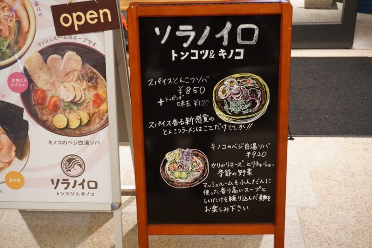 2017.04.21 夜 ラーメンを女性のものへ。とんこつを女性のものへ。@ソラノイロ トンコツ&キノコ ラーメン・つけめん 銀座・新橋・有楽町 〜999円 ★★★★★ 最近は女性のラーメン率も上がってきましたよね。昔はラーメンは男のものというイメージもありましたが、もはやそんな時代でありません。女性が美しさに加えて強さをも持ち始めたためなのでしょうが、ラーメンがお洒落化してきたことも一因でしょう。 それを引っ張ってきた店の1つは間違いなく『ソラノイロ』だ。ネーミングやポップなインテリアもそうですが、野菜を前面に押し出したベジタブルなそば「ベジソバ」が女性をひきつける。男っぽいラーメンのイメージを払拭した上で、ラーメン=体に悪いというイメージさえも変えてしまったのだから、もはやラーメンを否定する理由がありません。 そんなソラノイロの新しい挑戦はとんこつラーメン。こりゃ、男っぽさナンバーワンのラーメンじゃないですか! だがソラノイロの宮崎千尋さんがとんこつにたどり着いたのは必然だったのでしょう。だって、彼は一風堂のご出身だから。果たして原点であるとんこつラーメンにどんな色を加えたのでしょうか? 「スパイスとんこつそば」とんこつにスパイスを掛け算したことが全て。スパイスって臭みを消すのにも使いますよね。とんこつ独特の臭みは深みとして奥へ閉じ込め、スパイスが前面に感じるスープに仕上げている。オールスパイス、山椒、カルダモン、クローブなどカレー顔負けのスパイス使いをしているが、特にクミンが印象強い。パクチーの手助けもあるが、スパイスがエスニックさを感じさせます。女性はエスニック料理大好きですからね! 麺はどうか?とんかつラーメン特有のバリカタなどといった茹で加減の調整ではなく、麺自体のコシで固さ加減を調整しているようだ。これがとんこつスープとすこぶる相性がいい。チャーシューも品のいい脂で旨味をしっかり堪能。着色料を使った紅生姜ではなく、辛い味付けのもやしを使うところもソラノイロらしさだ。 ここに女性も愛するラーメン。女性も愛するトンコツが完成した。 — ソラノイロ トンコツ&キノコ東京都中央区京橋2-2-1 京橋エドグラン B1Fhttps://tabelog.com/tokyo/A1302/A130202/13202576/