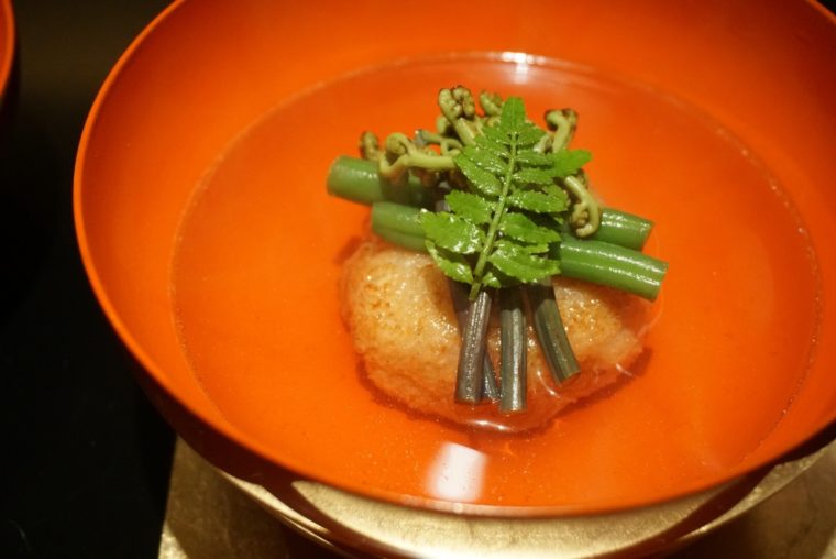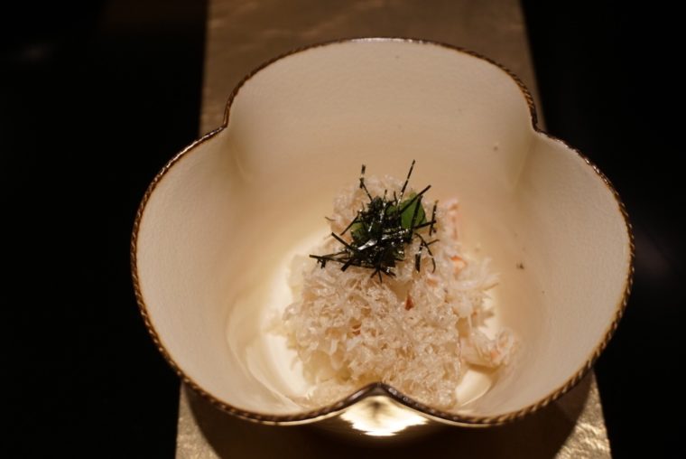 ここからは為すがままだ。「毛蟹(根室)」は細かくカットされたサマートリュフが提案性のある味を作り出し、「タラバガニの真丈」では鰹と昆布の深い出汁の旨味を感じさせてくれる伝統の日本料理らしい味を提供してくれます。
