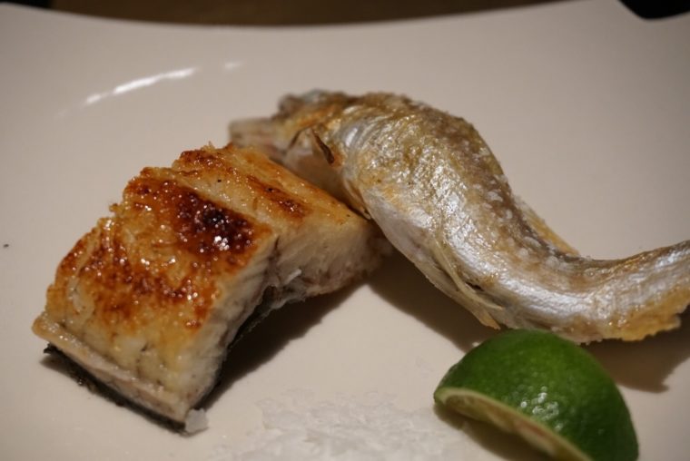 「鰻と鮎」特に鮎に驚き。柔らかい食感はもちろん、苦味よりも旨味が口に広がります。
