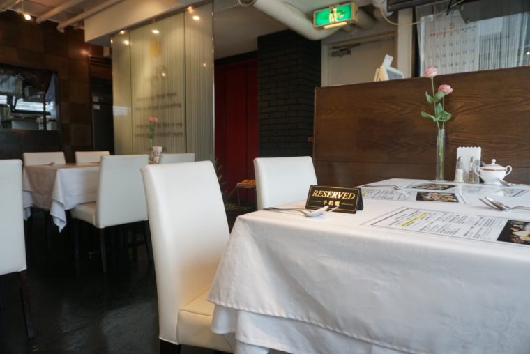そんな広尾に似合わない雑居ビルの三階。エレベーターの扉が開いた先はやっぱり広尾でした。採光がとれた店は優雅にみえ、雑居ビルの3階というネガは一切感じない。白を基調にした店内の影響か、品のよさが強調されます。いわゆるフォークとナイフの似合うカレーダイニングだ。