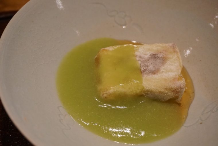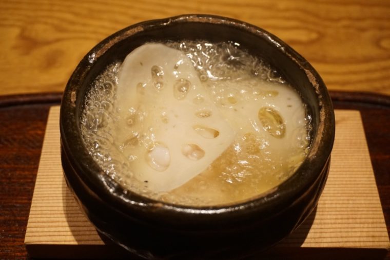 結論からいうと、素材を生かしつつも独自性も感じさせる料理でした。まるで、花山椒と牛肉のしゃぶしゃぶを合わせ、カラスミと蕎麦と合わせた「和久傳」のようです。それもそのはず、なんとご出身はその「和久傳」。修業先のエッセンスを取り入れつつ、ユニークな料理を作り続けているようです。その証拠こそが、この評価なのでしょう。