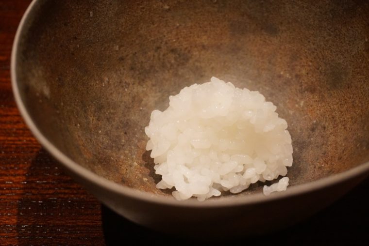 最後の料理が最もシンプルにして最も工夫がある。ずばり白飯です。少しづつ三度にわけて提供してくるのだが、米の味の変化が楽しめます。米の食感や艶、そして甘味の違いが米本来の美味しさを味あわせてくれます。しかも、じゃこや漬物がお代わり自由なのでお昼からご飯を食べ過ぎました。笑