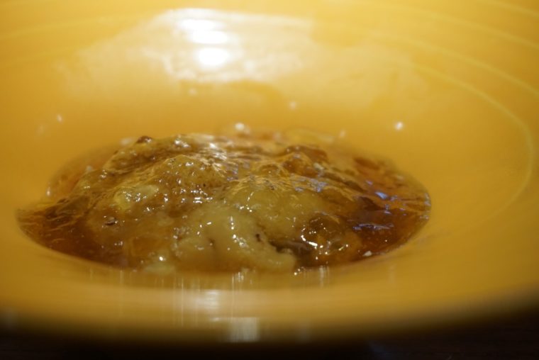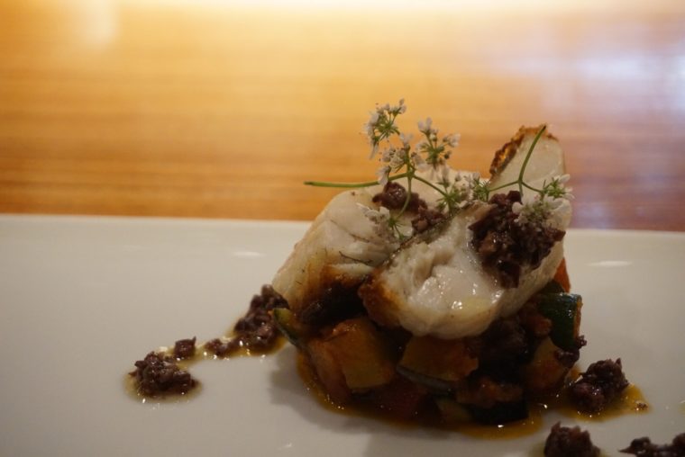 同じことが魚料理でもおこる。脂を感じさせる青森産のアイナメも美味しいのだが、やはり野菜の印象が大きい。アイナメの土台となるのは初夏の野菜を中心にしたラタトゥーユ。そしてアイナメの上にアクセントととして置かれるのはパクチーの花だ。パクチーを花の形で食べたのは初めてかもしれない。