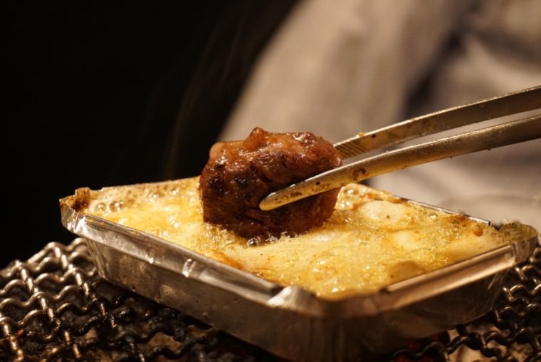 2017.07.03 夜 夜中だって美味しいものを諦めるな!魅惑の夜中焼肉へ。@かぶん 焼肉・肉料理 赤坂・永田町・溜池 5000円〜9999円 ★★★★☆ 仕事が遅くなったからって美味しいご飯を諦めてませんか?そんな時は是非赤坂へ!ご存知の通り赤坂には多くの韓国料理の店があり、そのほとんどが夜中まで営業しているのだ。まだまだ働き方改革が行き届かない業界の皆さんにとって、夜中にみえる一筋の光がここ『かぶん』にはあります! 最初にお約束しておきましょう。夜中まで働いた仕事の疲れが吹き飛びますよ!それほど美味しいお肉がいただけます。しかも、平日は夜中の3時までです。太る太らないは個人の責任ですので、クレームは受け付けません。 今日は必須の注文メニューから紹介していきましょう。名物の「浅漬けキムチ」。ヤンニョムを使って浅漬けしたキムチでその甘味も旨味も段違いです。とりあえず、こいつとビールを頼んでまずは乾杯しちゃってください。 肉に行く前にまだつまみが欲しいという方は是非「塩モツ煮込み」を!ホルモン屋出身のご主人だけあって様々な部位がスープの中に潜んでおります。しかも、この白濁した豚骨スープのようなパイタンスープがたまらないです。この時点でビールが二杯目に突入していることでしょう。 「タン(極タン、タン塩、タンすじ)」や一押しの「ハツ」や「ガツ」もいいが、必須メニューは「極カイノミ」。 肉自体にも塩がばっちりきいているのですが、こいつのタレが一味違います。同じ七輪で熱々に仕上げたニンニクバターにダイブさせるのです。レアな焼き加減で肉の旨味ももちろんですが、ニンニクバターでコーティングされたジャンク力にKOされることでしょう。 ジャンクといえば、絶対に忘れてはいけないのが「キムチチャーハン」。韓国風のチャーハンのジャンク度数が半端じゃないんです!ご飯の上に重ねた玉子部分にかかったソースにご注目ください。 ソースがオーロラソースと思いきや、コチジャンとマヨネーズのソースですよ。これ韓国でできうる最高のジャンク料理といっていいんじゃないでしょうか。まるで雲丹丼のような見た目ですが、このジャンクさにご飯がいくらでも入ります。しかも焼肉店らしく、炒飯の具材に肉がたっぷりときたもんだ。 完全に夜中には食べ過ぎだが、全部頼んで欲しい必須メニュー。いいんですよ、夜中まで頑張って働いたんだから!心に天使と悪魔がいるなら、かぶんでは悪魔が必ず勝つでしょう。 — かぶん東京都港区赤坂4-3-13 堀口ビル 1Fhttps://tabelog.com/tokyo/A1308/A130801/13141791/