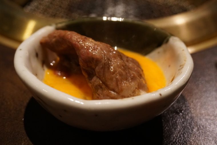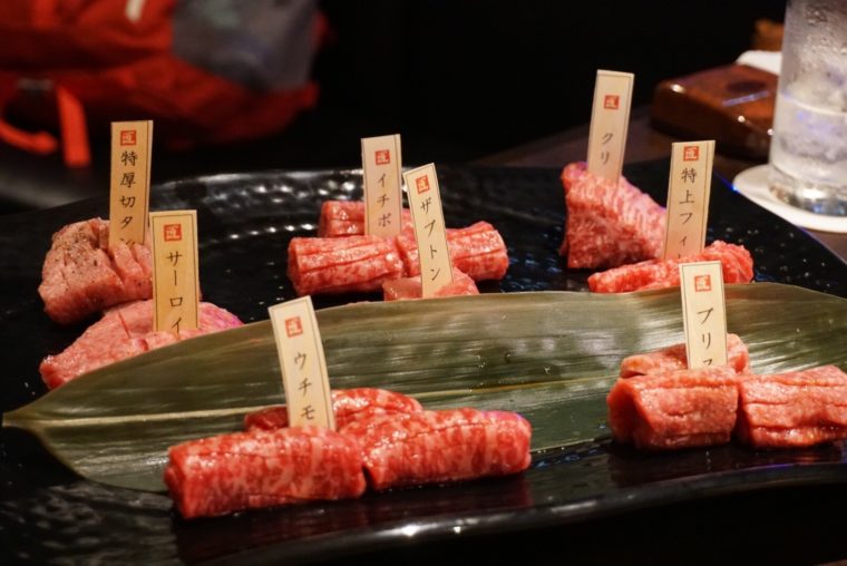 2017.08.10 夜 肉の切り方で肉のお勉強@焼肉ほりたん 焼肉・肉料理 銀座・新橋・有楽町 5000円〜9999円 ★★★☆☆ 「焼肉の味は切り方で決まる」これは焼肉店の『肉の切り方』のコンセプトだが、焼肉好きにとっては至極当たり前のこと。だけど、コンセプト自体を店名にしてしまったことが人気の最大の理由でしょう。「へぇ!」という感想は口コミにも繋がっていきます。 肉の切り方は日本橋、人形町、本日訪ねた銀座の3店舗を展開。中央区中心なのは、経営が明治座であることも無関係ではないでしょう。数寄屋橋交差点からの銀座の夜景を眺めていると立地戦略もうまくいってるのがわかります。 さて、それではどんな切り方が美味しいのかお勉強させていただきましょう。 コンセプトをわかりやすく表現しているのはわずか1mmの薄切りでいただく「サーロイン」。ステーキなど厚切りでも柔らかさ伝わる脂ののった部位。薄切りでは、口の中でふわっと溶けていくような食感を味わえます。すき焼き風に割り下と溶き卵でいただきます。 そして、これが切り方自慢の盛り合わせ!部位名入りで提供してくれるので、これは勉強になりますね。一頭買いした近江の黒毛和牛をこだわりの切り方でいただきましょう。少量多品種で楽しめるのも人気の秘訣かもしれません。肝心なお肉は十分に及第点なので、美味しく学べるお店といったところです。 「厚切りタン」「イチボ」「クリ」「サーロイン」「ザブトン」「特上フィレ」「ウチモモ」「ブリスケ」 — 焼肉ほりたん050-5868-5649東京都中央区銀座4-2-12 銀座クリスタルビル 6Fhttps://tabelog.com/tokyo/A1301/A130101/13131700/