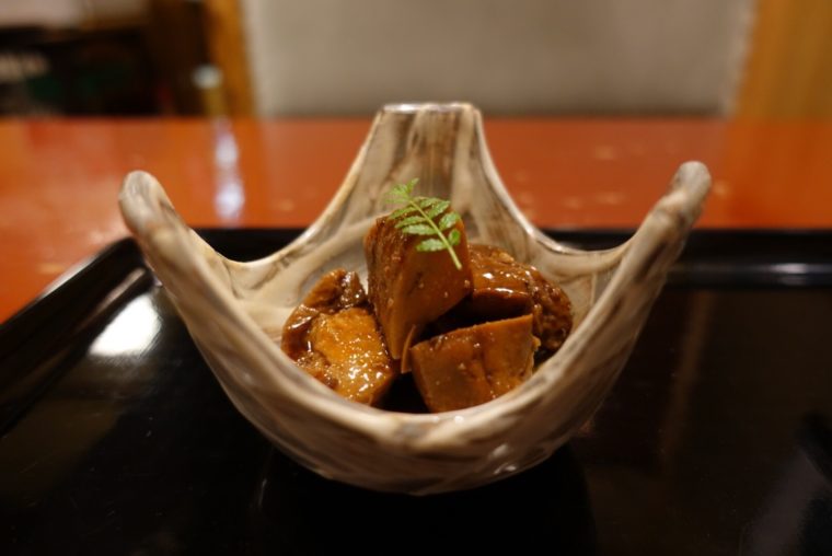 「極上は一時間ほどお時間をいただきます」とのことなので、まずは鰻前をいただきましょう。「きも焼」は、タレの甘さと肝の品のいい苦味が特徴です。食感があるので、咀嚼のたびにそれぞれが交互に口のなかで踊ります。鮟肝の山椒煮なんかは食材も味付けもつまみにぴったりです。