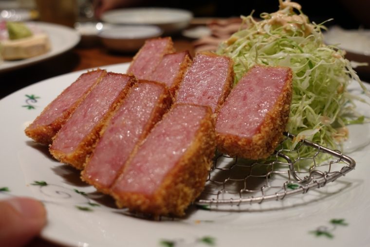 そして、注文必須なのは長崎が誇る「雲仙ハム」を使ったハムカツ。新橋の安居酒屋で食べるハムカツだって好きだが、ちょっとそのレベルではない。ハムから肉汁があふれだします。自信の脂が調味料の役割を務めます。ついステーキもいってしまった。メニュー自体は居酒屋とは変わらないが、1つ1つの素材のレベルが違う。そりゃ、金額だってあがるわけだ。