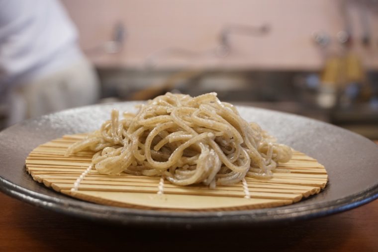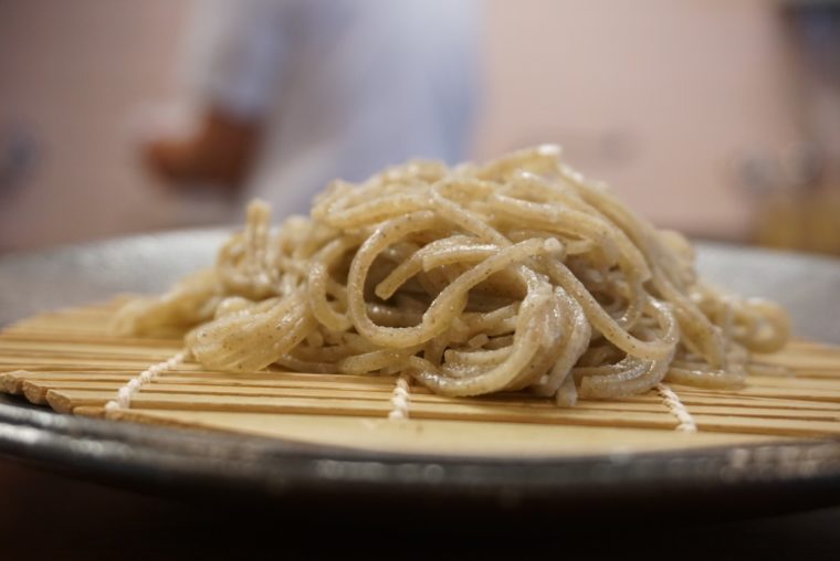 2017.11.25 昼 週三日、ランチのみ!?ハードルMAXの蕎麦工房。@蕎麦工房 膳 そば 京都市 1000円〜2999円 ★★★★☆ 営業日は金、土、日のわずか三日!?営業時間はランチのみの売り切れ次第!?そんなハードルの高さMAXの蕎麦屋が京都にあります。しかも、最寄駅もなく、京都駅からの距離も結構なもの。極め付けは紅葉の時期と重なってしまったのでタクシーも全滅ときました。バスを駆使して蕎麦屋を目指します。 『蕎麦工房 膳』工房という名前にふさわしい古民家風の外観。自家製粉の石臼挽きの手打ち蕎麦を提供しております。メニューは基本的にもりそばのみ。 以前は鴨汁やおろし蕎麦なんかもやってたそうですが、蕎麦を追求する過程でなくなっていったそうです。このエピソードとメニューだけで職人の気質が伝わってきます。 実際に、全て手作業による「挽きたて・打ちたて・ゆがきたて」のお蕎麦を提供しているようです。国産の玄そばを使用しているそうで、この日は福井県丸岡産のもの。 もりそばは2種類。最初に提供してくれたのは、在来種を細かく挽きぐるみしたもの。短く切れる感じは確実に十割そばなのですが、つるつるの食感や弾力が共存しております。喉越しがよく香りもいい。これは絶品だ。 もう1つのは、粗挽きのお蕎麦。こちらは香りが一段と高い。蕎麦そのものを楽しむ感じで、自然そのものをいただいているような印象です。 蕎麦つゆは鰹出汁がしっかり。かなり濃いめだがえぐみは一切ないきりっとしたものだ。提供する直前にすられる山葵やシャキシャキの食感のネギもみずみずしく脇役として役割を果たす。最後の蕎麦湯まで一切の妥協がなく、レベルの高さがうかがえます。これだけのハードルを越えて客が集まる理由がわかる気がします。 — 蕎麦工房 膳075-934-2620京都府京都市伏見区久我東町2-22https://tabelog.com/kyoto/A2607/A260702/26002288/