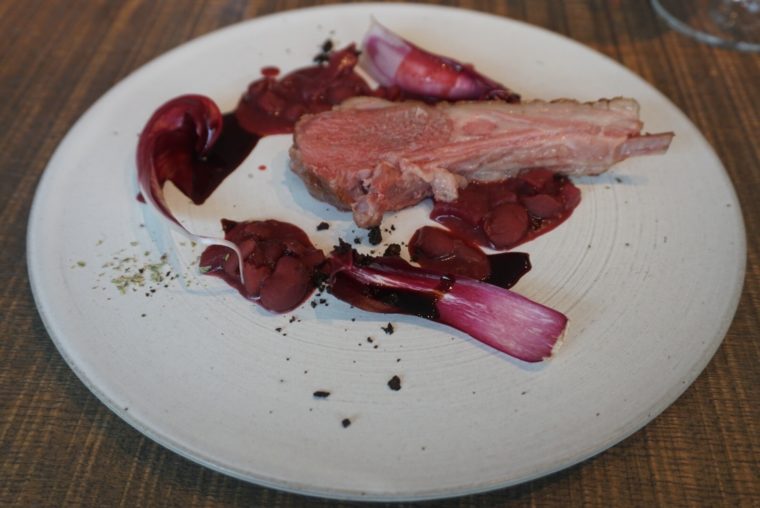 ニュージーランド産の「仔牛のロースト」では添え物として登場。ビーツとウズラ豆のソースともに綺麗な器を構成しています。仔牛などの臭みが苦手な人もご安心を。香りのいいハーブが味を整えてくれています。