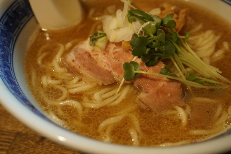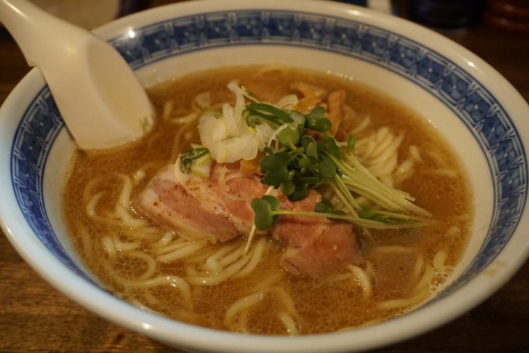 2018.02.11 夜 夜でも「燦燦」と輝く魚介系のラーメン!@燦燦斗 ラーメン・つけめん 大塚・巣鴨・駒込・赤羽 〜999円 ★★★★☆ 東十条のラーメン店『燦燦斗(さんさんと)』へ。屋号を見て美空ひばりさんの愛燦燦が浮かぶのはオジさんの証拠でしょうか。店も昭和歌謡が似合う路地にあり、赤提灯などが昭和ノスタルジーな世界に連れて行ってくれます。店内に入ると美空ひばりではないですが、沢田研二の「時の過ぎゆくままに」が流れてました。笑 メニューは、らーめん、つけめん、辛つけ、油そばの4つ。大盛りにするかどうかとトッピングを選べるようになってます。飲み屋っぽい外観だけに、チャーシューやメンマの盛り合わせにビールを頼んでるお客さんも多いようだ。初訪問のミトミえもんは、シンプルに「らーめん」をいただくことにします。 まずはスープを一口。節系の香りと煮干しの風味が目立ちます。舌のざらつくような印象はここから来るのでしょう。後味は豚骨のまったりした風味が追いかけてくるが、雑味などを感じないのは丁寧に作られた証拠でしょう。魚介と豚骨の旨味のみを上手に抽出したレベルの高いスープに仕上がっております。ついスープを飲み干してしまいたくなるほど完成度が高いです。 中太のストレートな麺は、加水率がかなり高めのようでパツンとしたコシを感じます。実は基本的に細麺好きなのだが、つるつるした口当たりのボディーでスープとのバランスは非常にいい。 チャーシューはレアな仕上がりで、脂などは感じない旨味が滲みでてくるタイプ。素材の風味が生きたメンマ、ネギ、カイワレなど1つ1つがしっかり意味をもって機能してます。奇をてらったものではないが、トータル的にレベルの高さが伺えます。シンプルながら、見た目にも美しいたおやかならーめんでございました。まさに燦燦としたという表現がぴったりです! — 燦燦斗東京都北区中十条3-16-15https://tabelog.com/tokyo/A1323/A132304/13038064/
