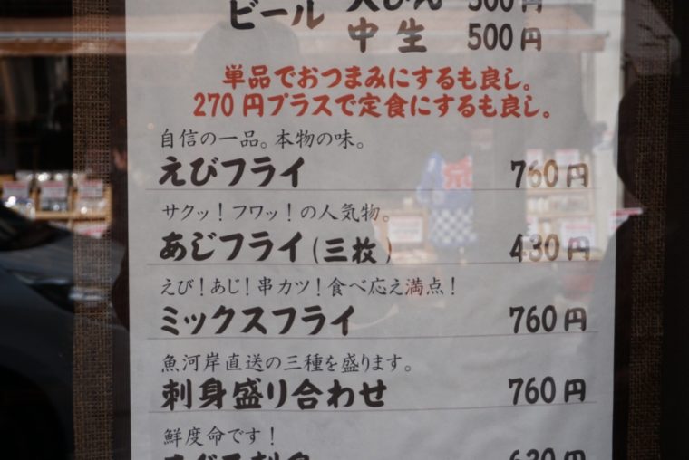 2018.02.26 昼 おばあちゃんの原宿、おばあちゃんのファミレス!@ときわ食堂 本店 居酒屋・定食 大塚・巣鴨・駒込・赤羽 1000円〜2999円 ★★☆☆☆ えびフライとあじフライで悩む〜!やってきのは、おばあちゃんの原宿である巣鴨。メイン通りである地蔵通り商店街の中にある『ときわ食堂』へ。 巣鴨という街がおばあちゃんの原宿なら、ときわ食堂はおばあちゃんのファミレスといったところでしょうか。メニューは目移りするほど豊富で、平日の13時過ぎでも行列のできる人気店でございます。 話を冒頭に移しましょう。ときわ食堂の人気メニューは、ずばり「海老フライ」と「アジフライ」。行列に並びながら、検討に検討を重ねましたが、答えは簡単でした。その両方+メンチカツという、迷いを見透かしたようなメニューが用意されているではありませんか。インスタ映えなど意識したビジュアル優先なら迷うとこですが、ミトミえもんは食べることの好奇心が圧勝します。 これがミックスフライ。手前からメンチカツ、あじフライ、えびフライと背の低い順に整列しております。 個人的にはあじフライが優勝。ふわふわとまでは言いませんが、骨っぽい感じはなくふんわりした食感です。えびフライは長身で肉厚なのでボリューミーな印象。衣はさくってあがっていて、身がしっかり詰まっております。メンチはちょっと重たかったかな。 すべてのおかずメニューは、+270円でご飯と味噌汁をセットにた定食に変更可能です。しかも、ご飯はおかわり一杯無料です。 揚げ物だけでなく、煮付けや刺身のメニューもかなりのボリューム。年齢層の高い街ではございますが、おばあちゃん達がこれらをペロリと食べてしまっております。!むしろ、最近は若い人たちのほうが少食かもしれませんね。笑 — ときわ食堂 本店03-3917-7617東京都豊島区巣鴨3-14-20https://tabelog.com/tokyo/A1323/A132301/13012336/