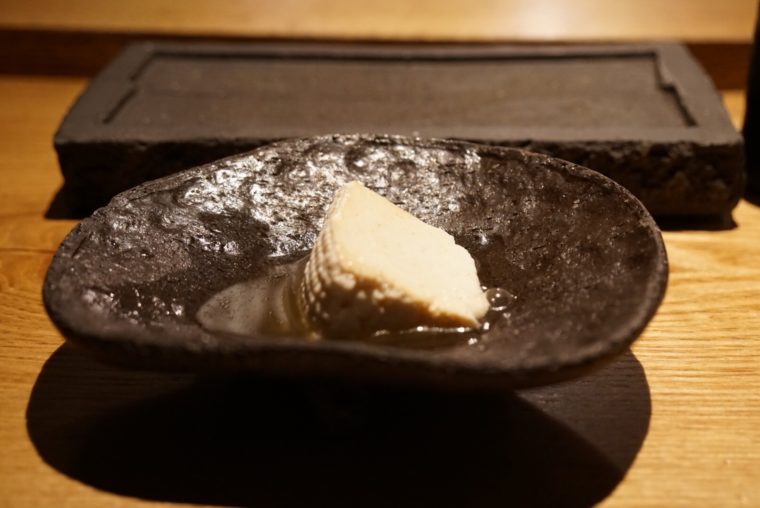 2018.06.29 夜 いわば鶏懐石!大阪随一の焼鳥店。@焼鳥 市松 焼鳥・焼きとん 大阪市 10000円〜29999円 ★★★★★ 大阪一の繁華街の北新地にある焼鳥店『焼鳥 市松』へ。繁華街にあって黒を基調としたシックな佇まいが、かえって高級感を作り出します。少し照明を落とした焼鳥店とは思えないムードのある空間。大将との距離も近く、串が焼かれる臨場感とともに会話が楽しめるのも魅力的です。 さて、大阪随一の焼鳥店では一体どんな焼鳥を提供してくれるのでしょうか?結論から申し上げると、焼鳥というジャンルでは語れないいわば「鶏懐石」の料理達が待っておりました。だって、コースの最初が「リコッタチーズのおでん」なのですもの。この後、個性的な料理が並ぶことは容易に想像がつきますね。 その証拠に全体をしめる串の割合は少ないですね。笑 ただ炭で焼くとは違う様々な料理法を実践しています。ちなみに使っているのは鶏は全て秋田の比内地鶏だそうです。肉の味が濃いのが特徴のブランド鶏でございます。 「もも肉のお造り」懐石料理を思わせるお造りの登場。胡麻油のパウダーや醤油のムースなどといただきます。 「皮付きのせせり」染み込んだタレの風味がたまらない!お酒がすすみます。 「卵管おろしポン酢」卵管の紐の部分だけ。おろしと黒胡椒でいただきます。 「もも肉の酒干し焼き」時間をかけて味を熟成。パリっとした皮もアクセント。 「背肝のサンチュ巻き」韓国風まできた! 「きんかんの海苔巻き」これ、衝撃的にうまいっす! 口直しなんかにはマンゴーやパッションフルーツで作った「カクテル」が登場!洒落てますね〜。 鶏の串は、「ずり」「手羽先」「肝」「つくね」の4つのみ。塩やタレの使い方のバランスは素晴らしい。ふわふわかつジューシーなつくねなどは技術を推し量るのに非常にわかりやすいアウトプットでございます。 意欲的なスタンスは食材にまで広がる。「うずら」「羊」「エゾジカ」などを提供しており、試作中という鴨の血を固めたものをいただきました。 料理法に食材まで、市松のチャレンジは幅が広い。海外にも目を向けており、その商圏の幅も広がっていきそうな気配が漂います。「うずら」は驚くほどふわふわな食感、「羊」はタレと炭火が導き出す新感覚、「エゾジカ」のはなんとトリュフバターが添えられます! 野菜は、地元泉州の「水ナス」、酢漬けした「トマト」、旨味たっぷりの大きい「マッシュルーム」を提供。最後は鶏スープと鶏と夏野菜で炒めたチキンライスで〆。焼き鳥ではなく、「鶏懐石」といった理由がわかりますよね? — 焼鳥 市松06-6346-0112大阪府大阪市北区堂島1-5-1 エスパス北新地23・1Fhttps://tabelog.com/osaka/A2701/A270101/27013209/