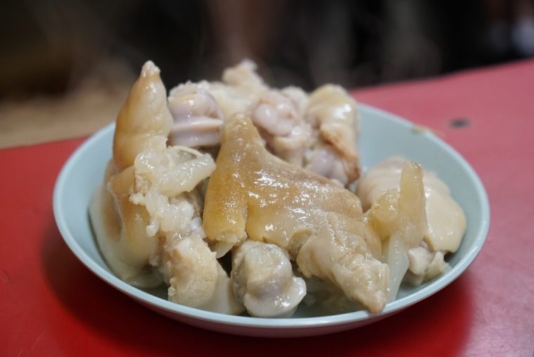 2018.06.30 昼 昼からビール!絶品の豚足とビールで幸せの絶頂!@豚足のかどや 焼鳥・焼きとん 大阪市 1000円〜2999円 ★★★★☆ 昼からビール、この響きが似合いすぎる店が大阪の難波にございます。観光客などには少し近寄りがたい雰囲気ですが、11時半には満席の『豚足のかどや』。屋号にもあるように名物は「豚足」。結構な嫌われ食材だったりもしますが、かどやの豚足は大人気。そして、これがまたビールに合うんだ、また! 大きな鍋で大量に煮込んだ豚足。きっとそれぞれの出汁がそれぞれの豚足にいい影響を与えているのでしょうね。骨つきですが、ほろりと肉から外すことができます。一方でぷにゅっと弾力を感じる食感で、コラーゲンそのものともいえる脂の旨味が口に広がっていく。この脂がビールを切望させる装置となり、最高の「昼からビール」の時間を提供してくれます! 豚足以外にも食べ応えのある串もオススメ。「ツラミ」と「センマイ」の串をいただきましたが、これだけ存在感のあるセンマイもなかなか珍しいですよね。 締めはこのスープ、これはメニューには載ってません!これこそが豚足が煮込まれたスープで、ネギを散らしただけというシンプルなもの。とろみが感じられるが、これは豚足の濃厚な旨味が溶け出したもの。これが本当に美味いスープなのです。豚足で始まり、豚足で終わる。これが豚足のかどやの楽しみ方です! — 豚足のかどや06-6631-7956大阪府大阪市浪速区難波中1-4-15 南松竹マンション 1Fhttps://tabelog.com/osaka/A2701/A270202/27007193/