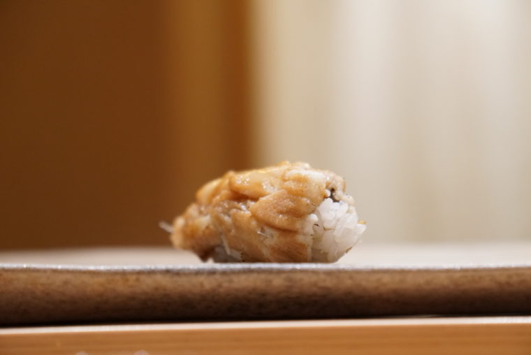 握りで最も印象に残ったのはシャリ。大きめの粒ということもあってか、その存在感が強く食感もしっかり感じられます。一方でまろやかに舌に溶け出すような軽さもあり、脂の強めの素材との相性が非常にいい。酸味は控えめなので万人に受け入れられそうな印象です。