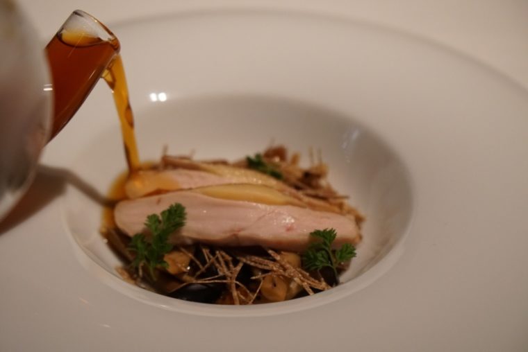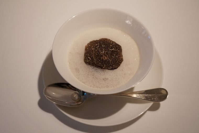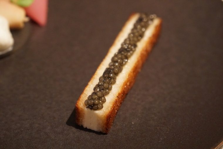 2019.01.05 夜 銀座の中心でフレンチを食らう!!@THIERRY MARX salon フレンチ 銀座・新橋・有楽町 30000円〜49999円 ★★★★☆ 銀座の中心である四丁目交差点にあるフレンチ『THIERRY MARX(ティエリー・マルクス)』。テラスからは銀座の中心地の夜景をのぞことができます。店名はシェフのお名前ですが、彼はフランスなご高名なシェフ。パリや銀座で出店しているだけでなく、大学で未来の食糧事情を研究し、調理師のための学校も主催しているそうだ。料理人の枠を飛び越え、世界の食のために働いているような印象ですね。きっと人格者なのでしょう。 人格者の料理は一体どんな感じなのでしょう。サービスの方曰く、もともとはクラシックなフレンチからスタートしたそうですが、途中から真反対ともいえるモダンガストロノミーにふった料理を提供していたそうです。全体的に、この良い所どりというか、この間の子といった実にバランスのいい料理を提供しております。 印象に残った料理をいくつかご紹介。まずはスープ。フランスで人気の高いホロホロ鶏入りのコンソメスープ。トリュフを含めたきのこ達の出汁の風味も含めた超濃厚スープ。具材には蕪なんかも参加しておりますが、味が染み付き、新しい命を吹き込まれたような味になっております。 そしてスペシャリテの1つであるキャビアの料理。見た目の可愛らしさは言わずもがなだが、その味も素晴らしい。チキンの胸肉のペーストをトーストに塗りつけ、その間にキャビアを敷き詰めるというビジュアル。ペーストがゆえにパテはトーストと一体感を作り、少々塩気は強いが圧倒的なキャビアの存在感が脳に幸せホルモンを作り出します。これ最高! これはもやしのリゾット。リゾットはもちろん米料理だが、米に見立てたのがもやし。一般的に安価な食材を主役にするギャップが憎らしい。だが、味付けにはマッシュルームのエスプーマ、チーズやトリュフなど主役級の食材がしっかり下支えをしております。 メインは、魚はサワラ、肉は蝦夷鹿が担当。ふわふわな焼き上がりのサワラに、フライパン1つで焼き上げたという蝦夷鹿からは火入れの能力の高さが伝わって参ります。 少々塩気が気になるのはご愛嬌、ワインをすすませるアイテムと考えれば違和感はございません。 フレンチらしくデザートは充実しているが、一番ユニークだったのは「お重」。 メニューにも記載されていたので、てっきりご飯物が登場するかと思っていたが、球体の器が分解されると可愛らしいデザート達が登場するのです。 ずばり素敵でございます。ティエリー・マルクス氏の料理は、きっと人を喜ばせるという気持ちがベースになっているのですね。ご馳走でした! — THIERRY MARX salonhttps://tabelog.com/tokyo/A1301/A130101/13199524/