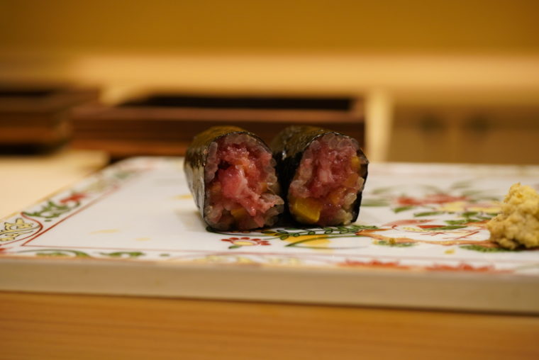また、山葵の味わいが素晴らしく、甘さ、香り、辛さがネタとシャリを際立たせます。ちなみに、名前は真妻わさびというそうだ。
