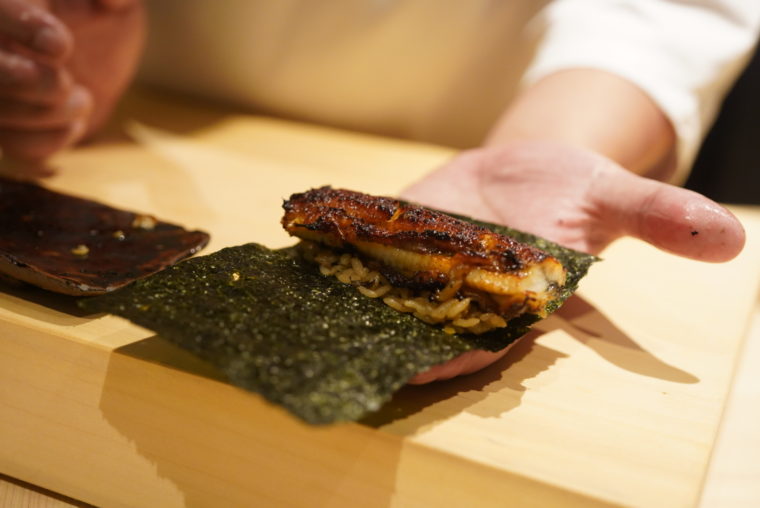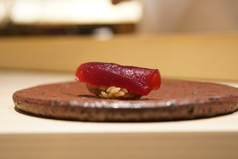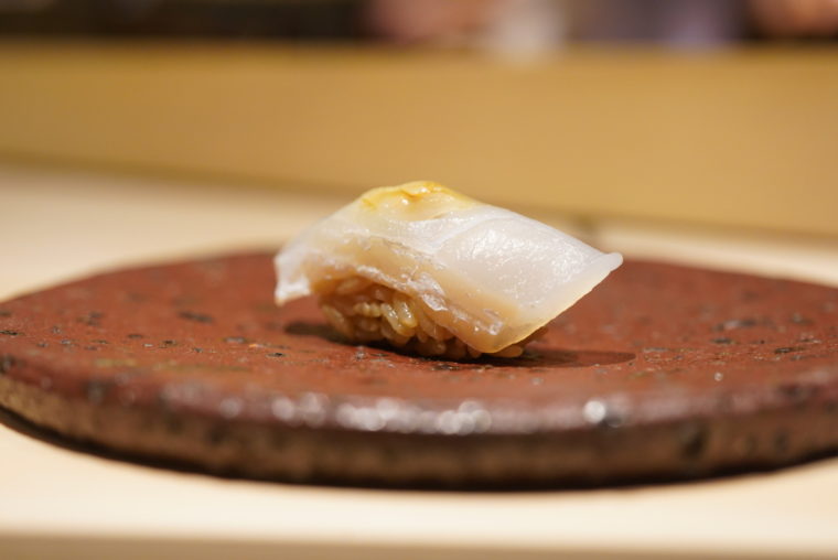 2020.06.18 夜 北新地が誇る超予約困難の寿司店!@髙橋 謙太郎 寿司 大阪市 10000円〜29999円 ★★★★☆ 大阪キタを代表する繁華街の北新地。必然的に注目グルメが集中しているエリアでもございますが、今回は数ヶ月先まで予約の取れない人気寿司店をご紹介。名前は『髙橋謙太郎』、もちろん大将のお名前も高橋謙太郎さんでございます。洗練された凛とした設えながら、大阪人らしい明るく人懐こいキャラクターに店内は陽のオーラに包まれます。ネタは、つまみと握りが代わる代わる展開される設計。江戸前に軸を置きつつも、ユニークなアレンジにアイデンティティーを感じます。 例えば、「稚鮎のシャーベットとヤングコーン」。蒸し立てでほかほかのヤングコーンとシャーベット状にした稚鮎。味わいの違いも楽しいが、温度のコントラストがそれぞれを際立たせます。 「サザエ」も面白い。海を再現したかのように、アオサとともに提供してくれます。だが、面白いのは肝の使い方で、サザエをコーティングする衣として機能させております。 「穴子」でも”坊主ごろし”なる海藻を塩のように味の添加に使っているのが新しい。 ちなみに、この海藻は日本海でしか取れない希少な品なんだとか。 「北寄貝」のクオリティーには驚き。説明は失念してしまったが、とろとろした食感は貝のそれとは思えませんでした。素材の良さや仕事の面白さが生み出す食感なのでしょう。美味い! 「のどぐろご飯」たっぷりの脂が乗ったのどぐろとご飯の組み合わせ、もはや説明の必要がないでしょう。バランスを取るためか、キューブ型の生姜を合わせてることにセンスを感じます。 その他のラインナップはこちら。「車海老、蓴菜、メロン」 「白甘鯛」 「トリガイ」地元大阪が産地 「鰯」 「毛蟹と焼き茄子」紫蘇がたっぷり 「北寄貝の紐」 「アマテガレイ」 「海鼠の卵巣と新蓮根のおから」 「蛸」 「漬け」インド鮪 「トロ」 「白海老」 「小肌」 「紫雲丹」 「金目鯛」 「味噌椀」 「鰻の手巻き」豪快にもうなぎがタップリと入った巻き寿司。 「トロたく」「玉子」 「青大豆の水羊羹」 — 髙橋 謙太郎050-3134-3336大阪府大阪市北区曽根崎新地1-7-5 バサラビル 4Fhttps://tabelog.com/osaka/A2701/A270101/27087204/