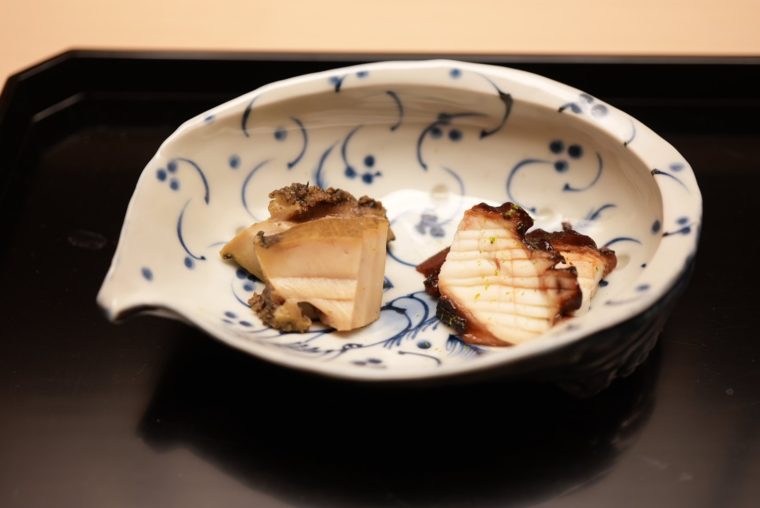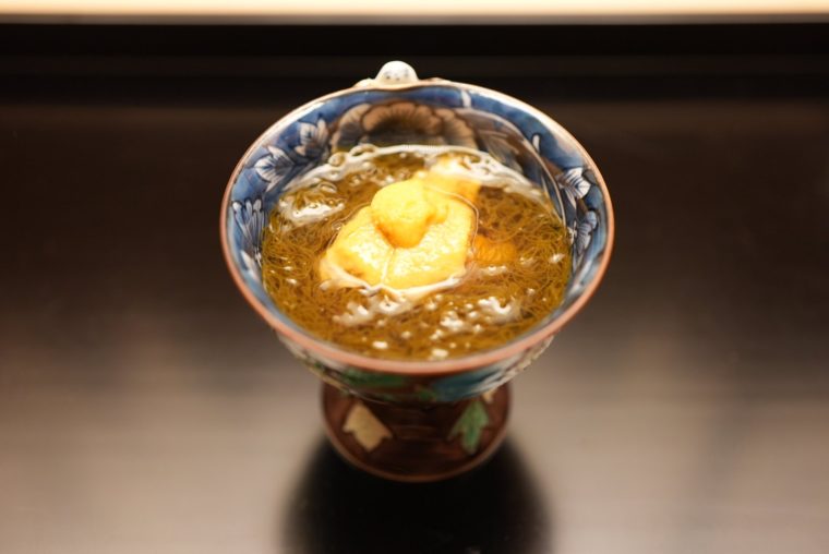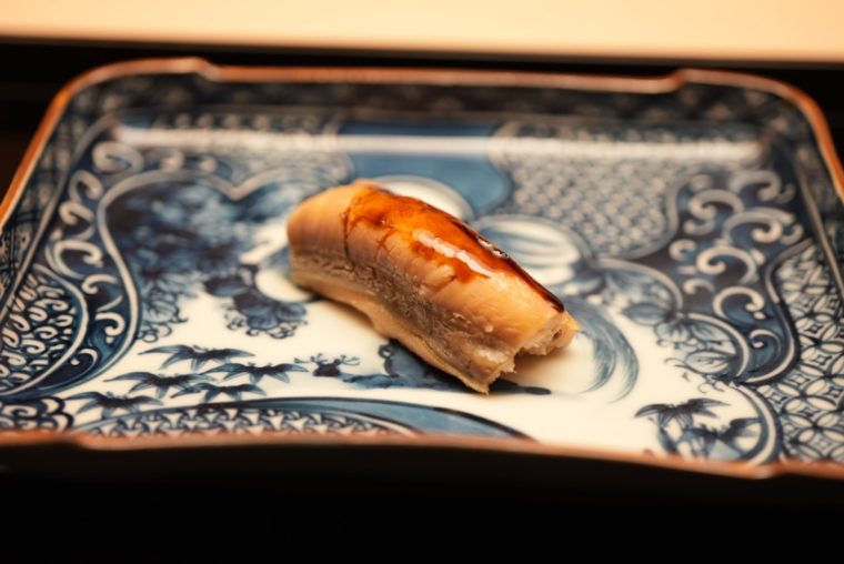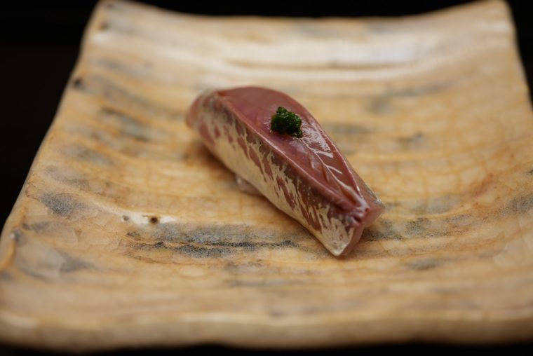 2021.06.20 夜 若くして名人の跡を継いだ男@銀座 鮨青木 銀座本店 寿司 銀座・新橋・有楽町 10000円〜29999円 ★★★★☆ 銀座の鮨店『鮨青木』、暖簾を守るのは二代目の青木利勝氏。二代目といっても楽してその座を手に入れたわけではなく、むしろ他の職人よりの倍も苦労してきたのかもしれない。 名人とも呼ばれた先代は、念願の銀座進出の翌年に他界。京橋の「与志乃」で腕を磨いた二代目が合流した直後の出来事。つまり、大黒柱を失ってからの波乱のスタートになったということ。同時に大きな借金を背負ったそうですが、先代が残した人脈などを財産にお店を成長させます。ちなみに、二代目が腕を磨いた与志乃は、あのすきやばし 次郎の小野二郎氏、鮨 水谷の水谷八郎氏など、もはや教科書レベルの職人を輩出している老舗でございます。先代から受け継ぐばかりでなく、自身でも厳しい修行の末に確かな実力を手に入れております。残念ながら、当日はその大将は不在。ただ、お弟子さん達の活躍も目立つ名店。きっと青木イズムは全ての職人達に浸透しているでしょう。 全体的な印象はネタに無理のさせない、背伸びのない王道なラインナップ。確かな素材を江戸前の丁寧な仕事で提供してくれる、派手さはなくとも安心感のあるコースになっております。一方で、つまみを中心にユニークなアプローチも見られ、これが我々だけでなく常連さん達も喜ばせているのでしょう。アクセントには”崩し”も重要だ。 その象徴ともいえるのが車海老。真ん中に切り身を入れて尻尾を重ねる斬新なアウトプット。車海老を大きくて一口で食べるには難儀するが、これなら誰でも楽勝です。しかも、歯応えの変化という副産物もあり。 まずはつまみから。ユニークな組み合わせにも注目ください。 「絹もずくと雲丹」強い酸味だが、ウニの甘さがバランスをとる。 「鰹のたたき」玉葱醤油で。塩ではなく、玉葱の旨味で食べさせます。 「真子鰈、中トロ(境港)、ミルガイ」鮪の仲買はやま幸 「トリガイの醤油焼き」黒七味と 「蒸し鮑は蒸し蛸」 「毛蟹」土佐酢のジュレと穂紫蘇と合わせて 「鰻の白焼き」皮めだけを残してとけていきます。キャビアの塩気もグッドなアクセント ここから握り。シャリは硬めの炊き具合で、米酢による王道寿司。 「小肌」厚めの切り付け 「金目鯛」炙りにて 「白烏賊」酢橘の塩で 「赤身」漬けにて 「大トロ」香りが非常に強い個体 「平貝」 「鯵」 「雲丹」礼文より 「蝦蛄」小樽より。しっかりした食感があり、それが味にも比例します。 「穴子」 名人の息子にして、名店で成長を遂げた男。若い時分から暖簾を守り続ける二代目二代目に、今度は握ってもらいたい。ご馳走様でした。 — 銀座 鮨青木 銀座本店03-3289-1044東京都中央区銀座6-7-4 銀座タカハシビル 2Fhttps://tabelog.com/tokyo/A1301/A130101/13000563/