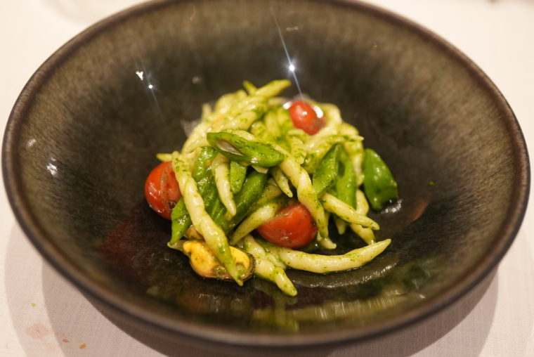 2021.08.17 夜 独創的なトロフィエがお気に入り!!@プリンチピオ イタリアン・ピザ 六本木・麻布・広尾 5000円〜9999円 ★★★★☆ 麻布十番の商店街の程近く、小さく温かいイタリアンがある。 ”始まり”という意味を持つ『プリンチピオ (Principio)』が始まったのは、2012年のこと。複数のイタリアンで腕を磨き、元祖予約困難店とも呼ばれるアロマフレスカを経て独立。 イタリアの郷土料理をアップデートした同店と同様に、料理に独創性を加えた料理が並ぶ。その中にあっても、保守的な食べ手でも満足させられる絶妙なバランスにある。そして、シェフとサービスの奥様の人柄が素晴らしい。人柄に触れれば、不思議と料理への丁寧さや愛情が伝わってまいります。 ドリンクが到着するまではオリーブと歓談。オリーブを食べたの残ったオイルはパン用に再利用。サステナブルなアプローチはもはや良いレストランの条件ですね。さっそく料理を紹介していきましょう。 「アミューズ」アミューズはアメリカンドック!?衣の中身はイタリア伝統のソーセージであるモルタデッラ。ケチャップにあたるのはパプリカとスパイスで酸味と辛味を加えます。イタリアンシェフが本気でジャンクフードを作るとこうなるのか。ジャンクな印象を保持しつつも、とても上品に仕上がります。 「石鰈と白桃」いわゆるサラダなのだが、なんて華美なシルエットでしょう。適度な塩気と柔らかい酸味、さらに爽やかなハーブの風味が加わります。 「夏鹿のコトレッタ」鳥取県産の夏鹿の揚げ物。サマートリュフやカステルマーニョチーズと合わせます。メイン料理のようだが、温前菜のポジションで提供される。肉質にさっぱり感があるので違和感がない。チーズと重ねるとコクを増すが、目立ちすぎちゃうので、足し引きしながら調整してみて。 「トロフィエ」本日の優勝作品。自家製のトロフィエが絶品で、もっちりした生パスタのイメージに近い。この食感がバジルの風味を口の中に広げ、ムール貝による塩気を余韻に残す。シルエットの美しさもあり、バジルでコーティングしたトロフィエといんげんが美しく同化しております。トマトは色味と味わいのアクセント。 「パッパルデッレ」短各牛のラグーを使ったアラビアータ。肉単体でも既に美味。辛さとチーズのコクがしっかりと握手しております。 同パスタの語源はイタリア語で”食いしん坊”という意味だが、確かにこれはいくらでも食べられます。笑 「厳選豚ロース炭火焼き」中勢以で熟成した鹿児島県産の豚。かなりさっぱりとした味わいなので、ソースが重要な役割を果たす。ナッツとフェンネルとで食べるのが一番お気に入りです。 「沖縄マンゴーパッションフルーツのエスプーマ」最後は沖縄一色のデザートで。マンゴーと合わせるのはさんぴん茶のゼリー。こういうアプローチってほんとお洒落ですよね。沖縄行きたいけど行けないから嬉しい! ご馳走様でした! — プリンチピオ03-6809-4982東京都港区麻布十番2-4-8 麻布十番舘 2Fhttps://tabelog.com/tokyo/A1307/A130702/13144481/
