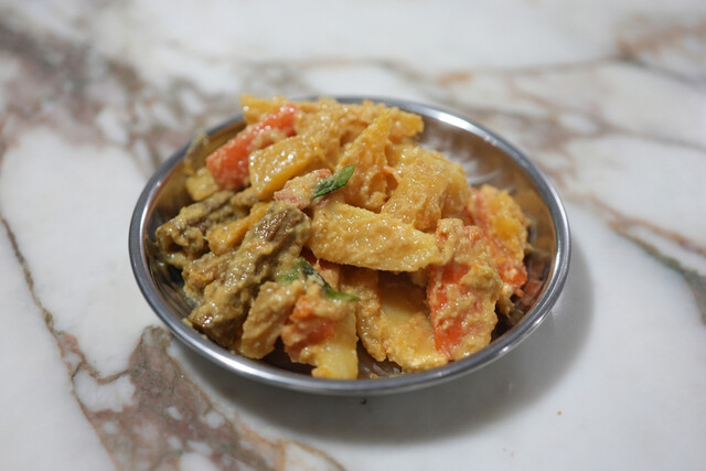 2023.07.02 夜 漂う本格感。玄人ほどに感動の声をあげる。@サンバレーホテル カレー 東急沿線 5000円〜9999円 ★★★★☆ 三軒茶屋にあるインド料理店『サンバレーホテル』へ。ホテルといっても宿泊するのではありません。本場のインドではレストランのことをホテルと表記することが多いそうだ。本場の空気感はネーミングばかりでなく、店全体から漂う本格感。インド料理の玄人ほどにそのレベルの高さを称賛する声が聞こえてまいります。 料理をご紹介していく前に、まず予約のフリーについて情報共有しておきます。 ①メニューが前日にTwitterで公開されるのでチェック②店頭で当日12時頃に記帳スタート。③訪問時間(17時or19時)とメニューを決定④予約時間に訪問 ってな感じ。Twitterで丁寧に初心者向けの説明がされているので、しっかり予習しておきましょう。 ちなみに、この日のメニューは南インドのケララ州の料理で現地感が強めとのこと。つまり、日本人にアジャストしたようなものではなく、本格中の本格というわけだ。メニューは4種類の用意がありますが、お一人様への推奨は2−3種類とのこと。スモールサイズながら全部を注文しましたが、確かにちょっとボリュームが過多だったかもしれません。笑 「Fish Vattichathu」鯖のカレー。圧倒的な魚介の旨味にスパイスを強く合わせたカレー。かなり骨が多くて食べづらいのが難点だが、骨のまわりこそが旨味が多いのは定説。便利よりも味を追い求める、そんなパッションを感じます。 「Kerala Mutton Fry」こっちもやはり骨付きのマトン。ココナッツや玉葱の甘味が一体となっており、これのおかげかマトンの臭みなどは一切感じない。手加減なしのマトンには正直警戒していたが、なんのその。普通にめちゃくちゃ美味いじゃないの。 「Chicken Kurma」チキンのカレーが最も偏差値が高かった。もやっとしたスパイス使いで、最初は拠り所を見つけられず。ただ、逆に薬膳的なゆっくりと旨味が追いかけてくるようで後半はスプーンが止まらなくなってしまいました。笑 「Avial (Drumstick, Mango)」ごちゃ混ぜという意味を持つケララの料理だそうで、数種類の野菜を組み合わせるの一般的。スティック状の野菜やじゃがいもが甘味と酸味でコーティングされております。ちなみに、フルーティーな酸味の正体のマンゴーだとか。 店から漂う本格感に偽りなし。また、違うテーマの日にも是非訪問してみたい。ご馳走様でした。 — サンバレーホテル東京都世田谷区上馬1-15-10 オリエント三軒茶屋ハウス1Fhttps://tabelog.com/tokyo/A1317/A131706/13195313/