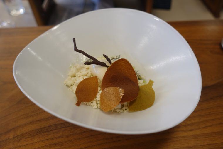 葉っぱに枝に雪。この季節の韓国の景色を切り取ったような美しい料理。