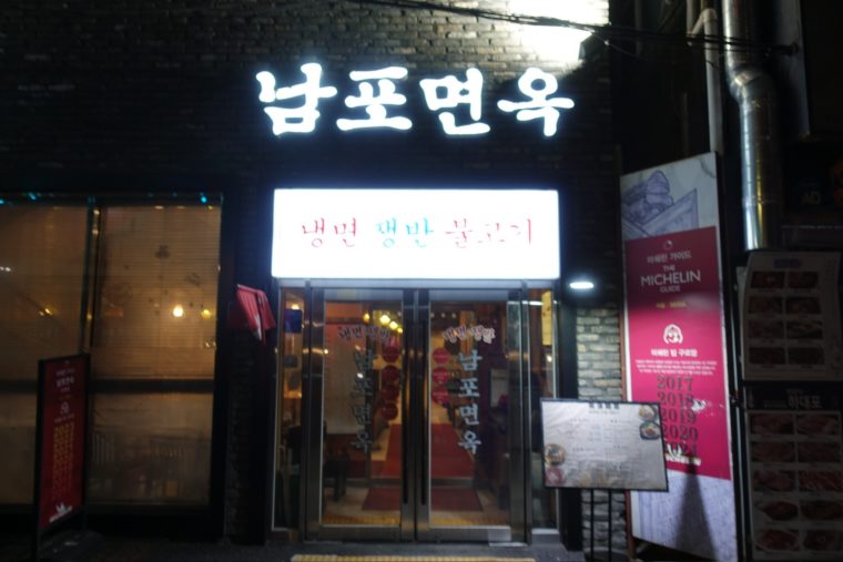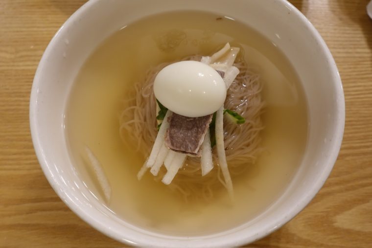 2024.01.07 夜 名物は、平壌式冷麺。@ナムポミョノッ(南浦麺屋) 韓国料理 海外 ★★☆☆☆ ソウルを代表する街の明洞エリアにあり、昔ながらの韓屋な雰囲気がシズルになっております。ミシュランガイドにも紹介された実力派で、平壌式の鍋料理が名物とのこと。 冷麺もまた名物の1つで、今回はこれを注文。スープは牛出汁をベースに、水キムチを合わせたもの。かなり上品な味わいで、そのままだと物足りないという声もあるかも。 そこで活躍するのが辛子と酢。あまり酸味には積極的ではないですが、これは絶対投入したほうがいい。 麺は蕎麦粉の割合が高いようですが、ふわっとした柔らかめの細麺。ある意味、こちらも少々無味気味なので、スープの味を強くすることをオススメします。 ご馳走様でした。 — ソウル特別市 中区 茶洞 121-4(서울특별시 중구 다동 121-4) TEL 02-777-3131