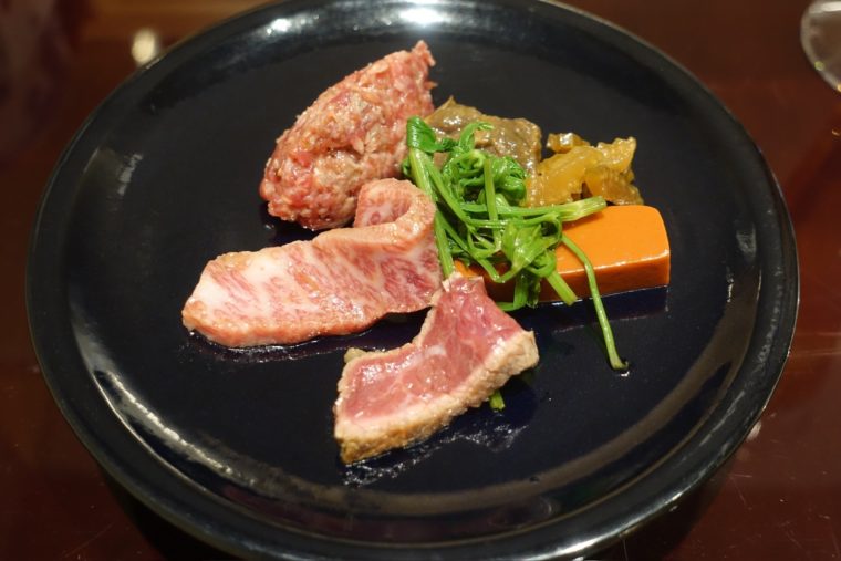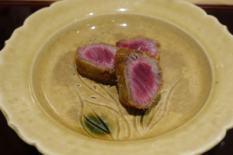 2024.05.25 昼 これが日本の宝である和牛か。@肉料理ふくなが 焼肉・肉料理 甲賀・湖南 10000円〜29999円 ★★★★★ 和牛は日本の宝です。そう語るのは滋賀県の大津にある近江牛料理専門店の『肉料理ふくなが』。 店主の福永シェフのご実家は牧場直営の精肉店「福永喜三郎商店」であり、それだけにこの言葉に強い説得力を感じます。しかもこの精肉店、並の精肉店ではない。牛肉の聖地と名高い肉の名店「くいしんぼー山中」が最も信頼する精肉店であり、山中とふくながの2店舗のみが取り扱う幻級の牛肉なのでございます。 雌の未経産だけにこだわり、昔ながらの肥育法を採用することで自然な霜降りを持つ個体を作り上げるのが特徴。最近では霜降り肉を敬遠する風潮も生まれているが、これは生産効率などを追い求めた結果、無理やり作った霜降り肉が産んだ弊害なのだとか。むしろ、特別なことをしないことが最大の秘訣のようです。日本の宝である和牛を守りつつ、その美味しさを料理の力で伝えていく、それが「肉料理ふくなが」のアイデンティティーなのでしょう。それでは、コース(22000円)の内容をご紹介してまいりましょう。ちなみに、一番のお気に入りはこのハンバーグ。中心部はレアな火入れになっており、その柔らかさと口どけの良さは言うに及ばず。肉汁はというと、クリアなのに濃厚という驚きの脂が次から次へと溢れ出します。 なるほど、これが自然にできた霜降りの旨みなのか。お皿に残った脂が恨めしいが、すぐにここに炊き立てご飯が投入されます。これがまた美味い。ふくながの肉の凄さを語る上で、象徴となるような逸品ですね。その他の料理たちはこちら。「前菜盛り合わせ」リブロースのたたき、バラサキの炙り、フワの生姜醤油煮、ステーキアッシュ。 「すき焼き」オランデーズソースで。すき焼きはやっぱり霜降り肉でなきゃ。 「ビフカツ」薄衣に包まれたのはレアめな火入れのカイノミ。ソースの必要性を感じないほど、肉汁の旨みがソース状態で口の中に広がっていきます。これは生涯ナンバーワンのビフカツと言っても過言ではない。 「シマチョウ」炭火焼き。塩だれで。 「ハラミ」炭火焼き。特製ナムルつき。 「ブータンノワール」の牛レバー版。林檎のピュレと合わせて。 「ブイヨン」生薬入りの薬膳感満載の濃厚スープ。 「ポテトフライ」牛脂100%で揚げた正真正銘、肉屋のポテトフライ。 「イチボ」ステーキにて。ご飯と一緒にステーキ定食状態に。これ、いくらでも食べられます。笑 「ナムル」付け合わせの3色のナムルにもしっかり和牛が入り込みます。 ご馳走様でした。 — 肉料理ふくなが077-596-5125滋賀県守山市守山2-3-7https://tabelog.com/shiga/A2502/A250203/25007783/